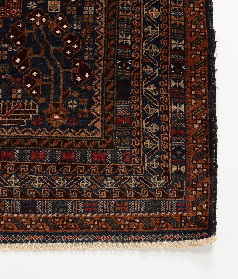 アフガニスタン・ヘラート州ザッカン産のバルーチ族によって、1980年代から1990年代にかけて丹念に手織りされたヴィンテージラグ。