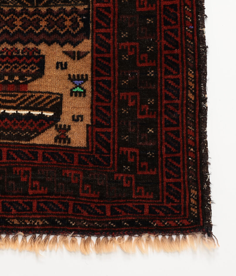 アフガニスタン・ヘラート州ザッカン産のバルーチ族によって、1980年代に手織りされた、非常に個性的でコレクター性の高いヴィンテージラグ。