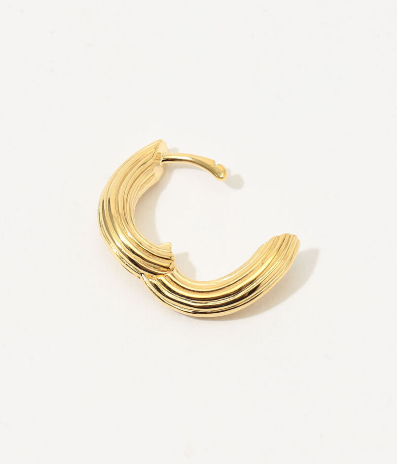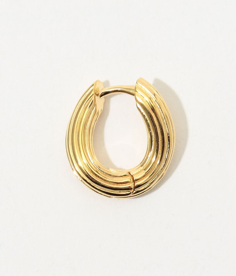 柔らかな有機的フォルムと彫刻的な構造が調和した、存在感のあるツイストフープピアス。