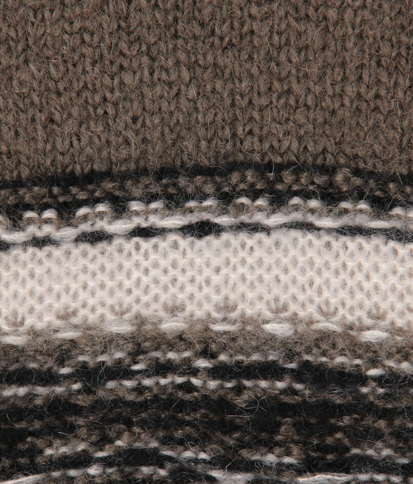 リバースニット編みのボディが、フェアアイルデザインを引き立てます。