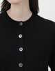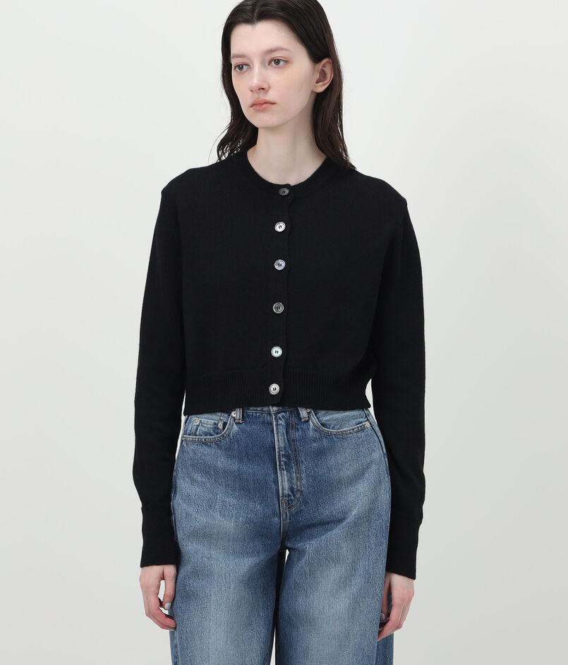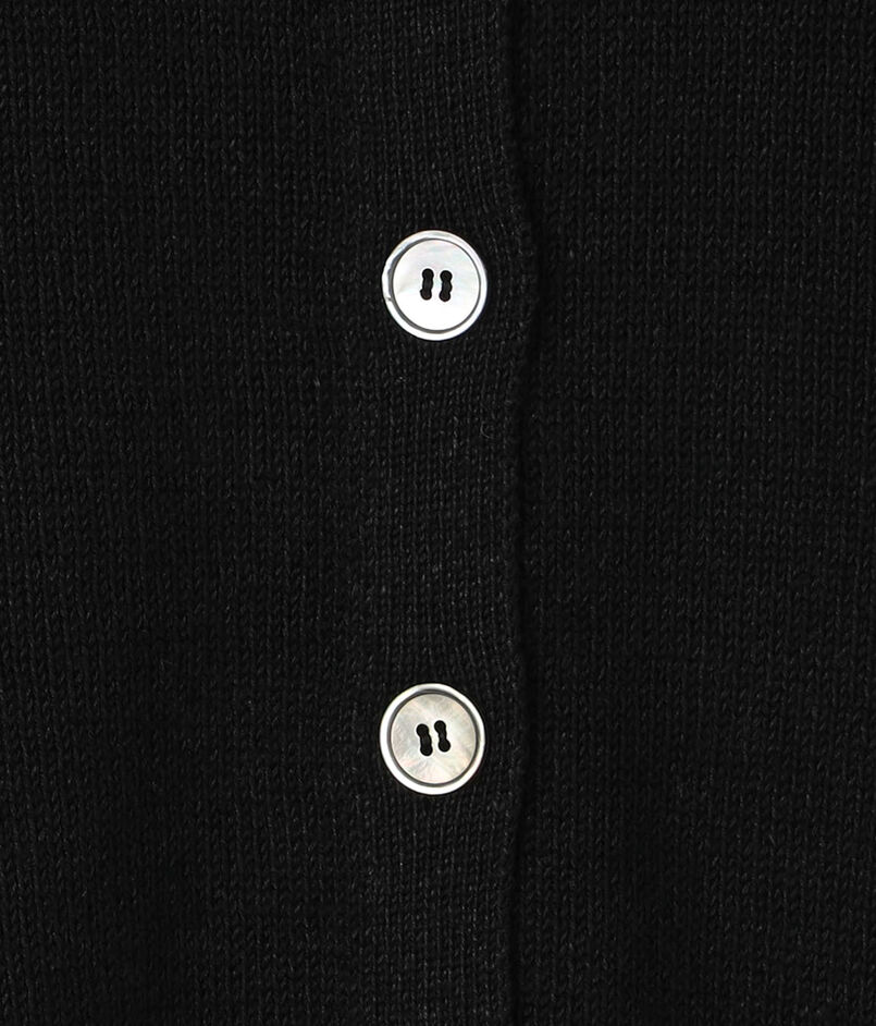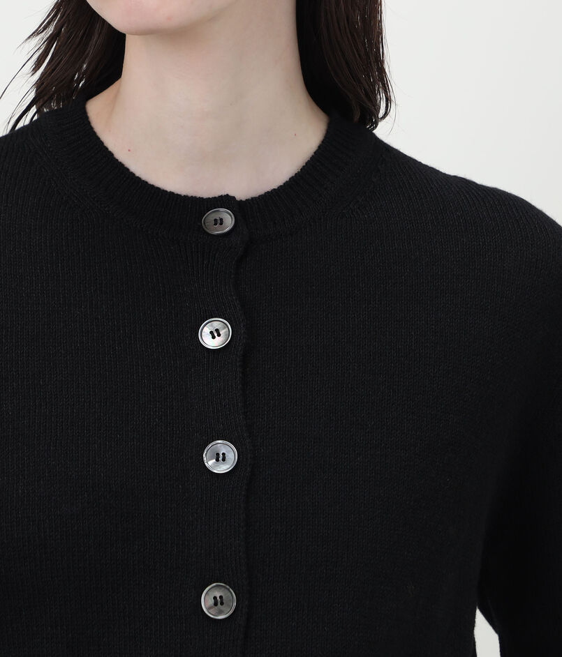 すっきりと仕上げた平編みに、上品に柔らかな光を放つシェルボタンがポイントです。