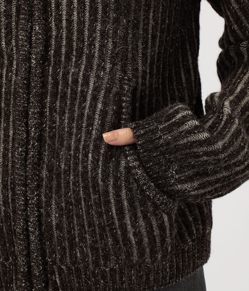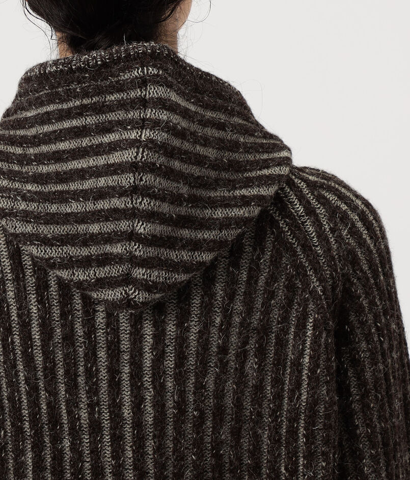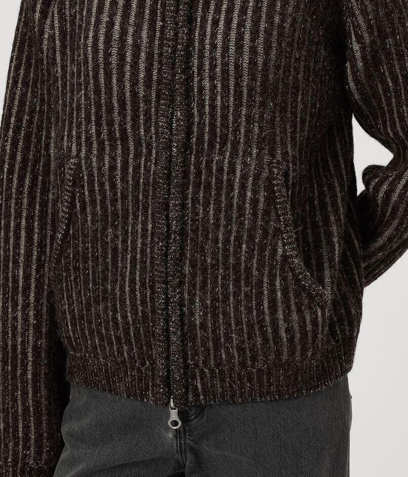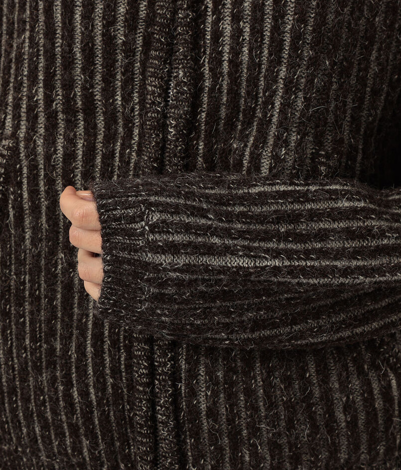 カラーコントラストを効かせた存在感のある太めのリブ編みが身体を包み込む、抜群の着心地が魅力です。