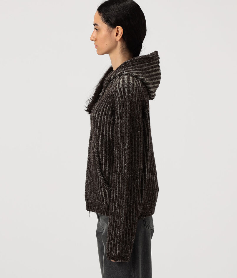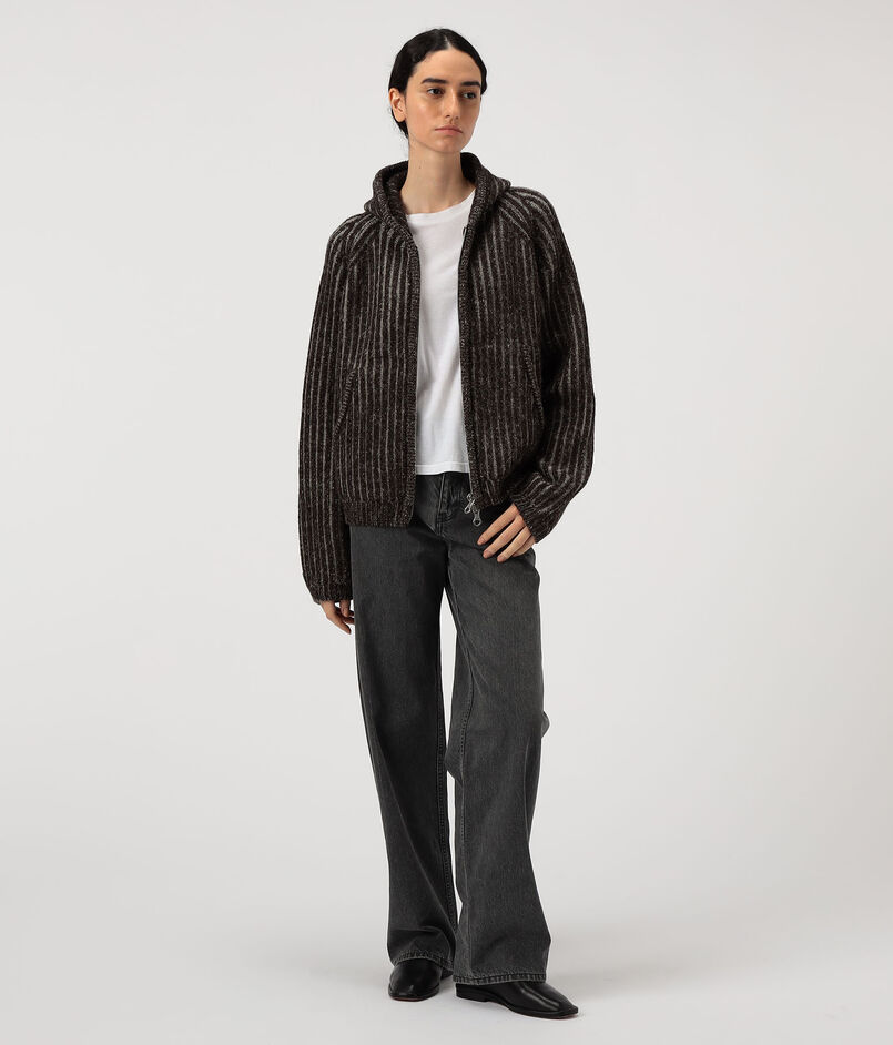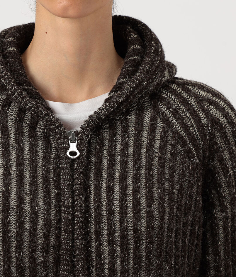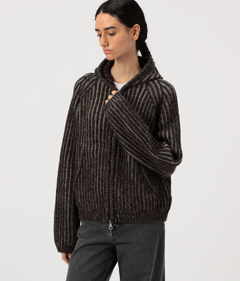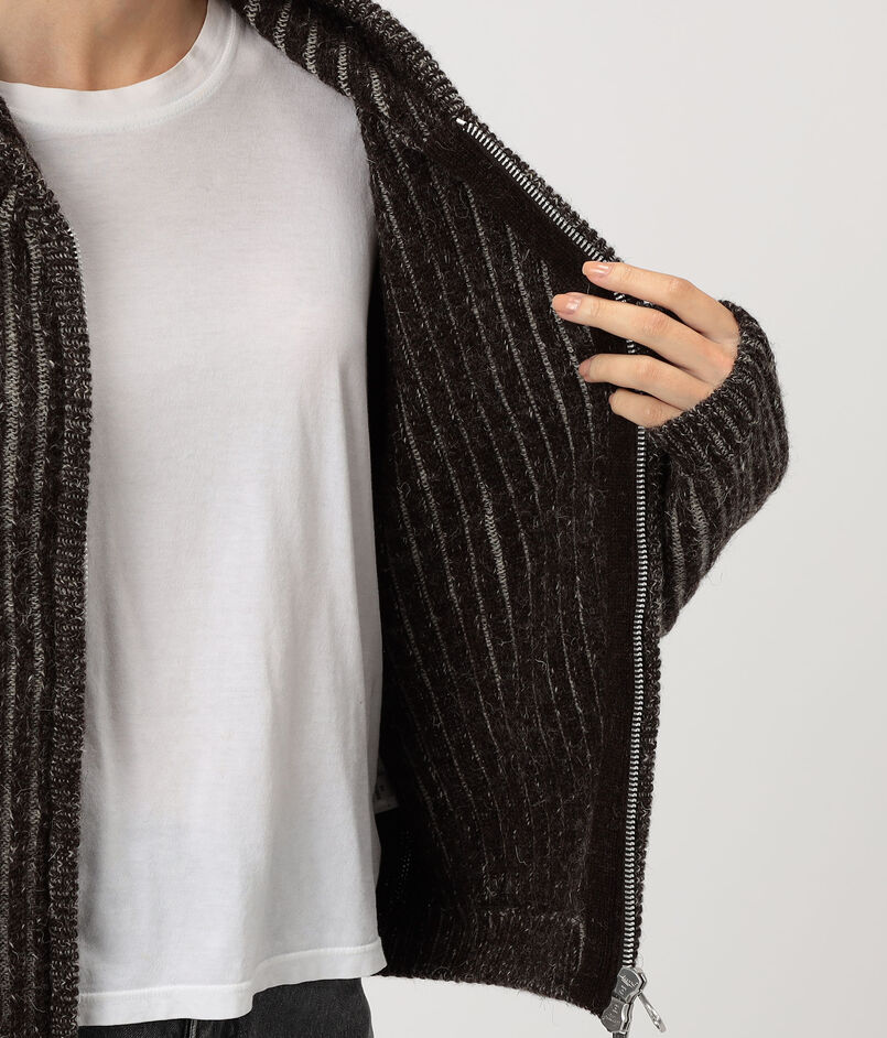 メランジカラーのウールを使用した、ブランド定番のフルジップフーディー。
