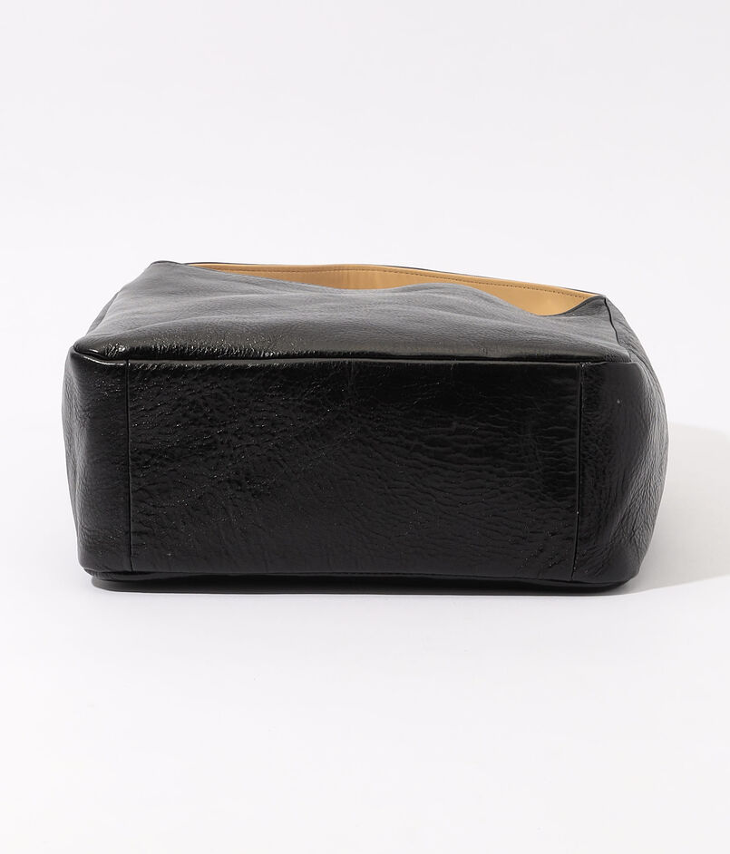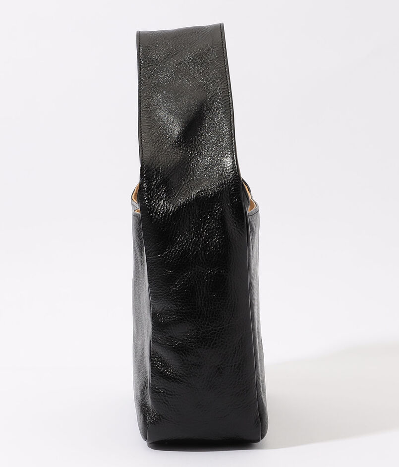 バッグのマチからぐるりと繋がるような、幅広のトップハンドルデザインがユニークなバッグ。