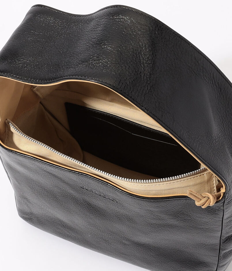 フレンチレザーの裏地にはキャンバスが施され、開口部はファスナーで開閉できます。