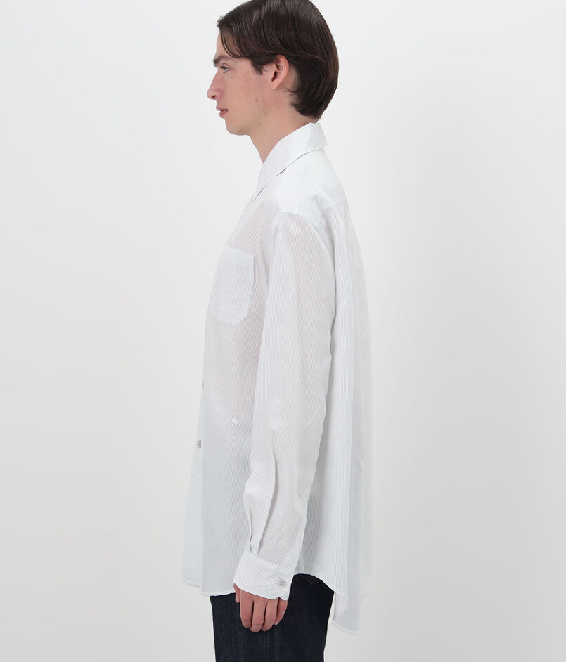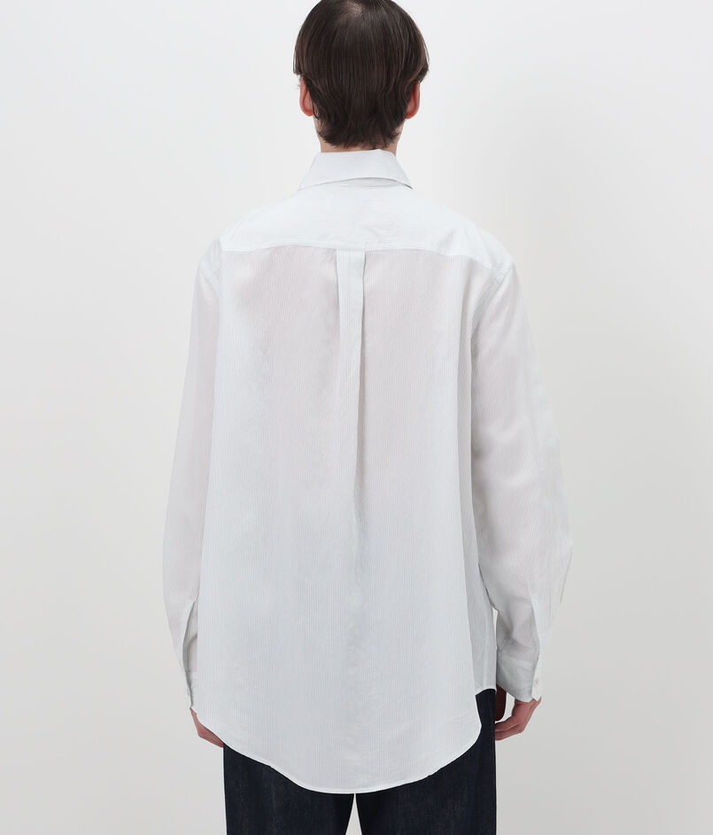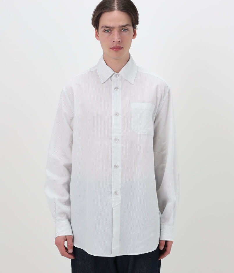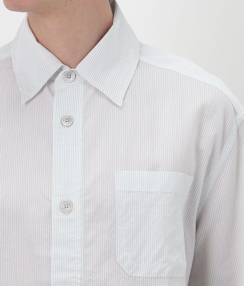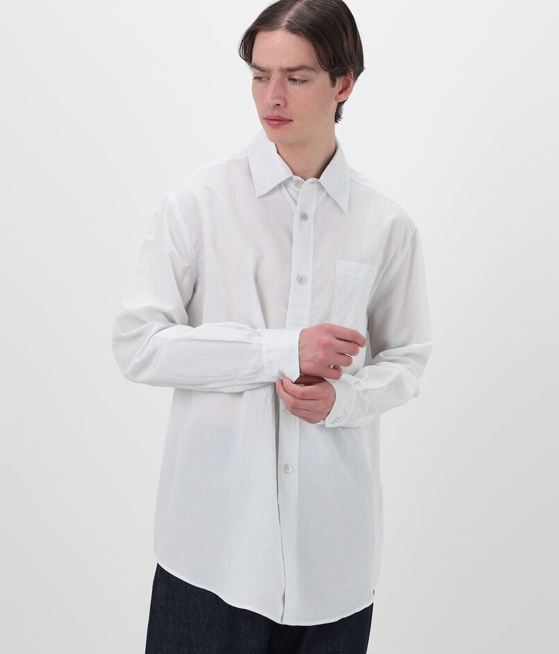 イタリア製混紡生地に、ミッドナイトラインストライプを施したシャツ。