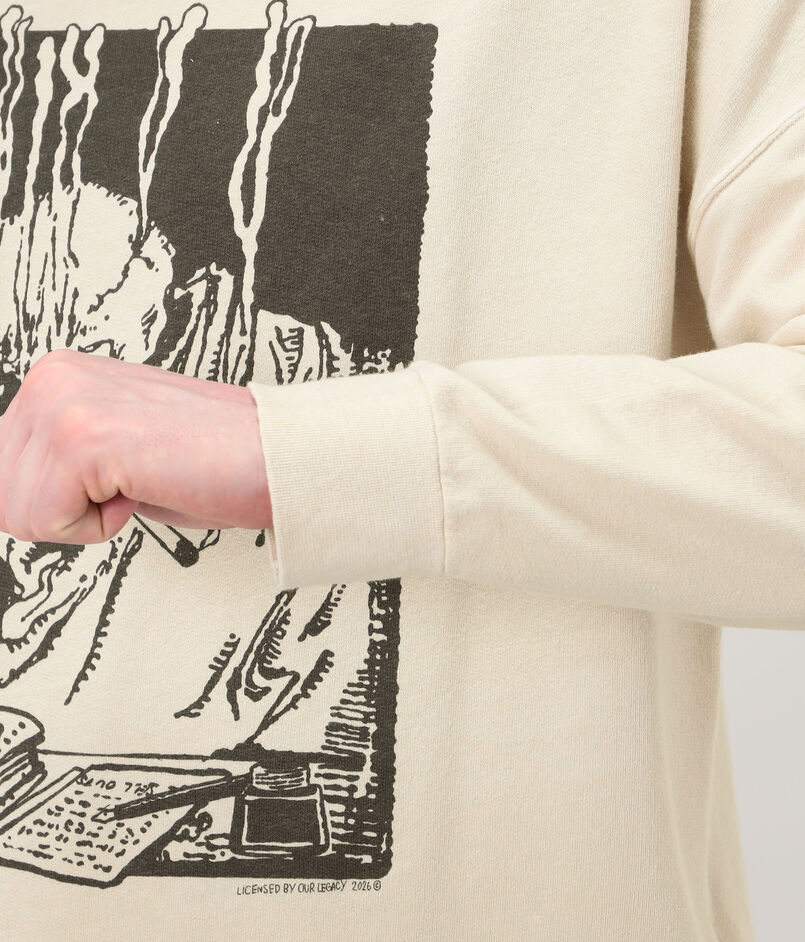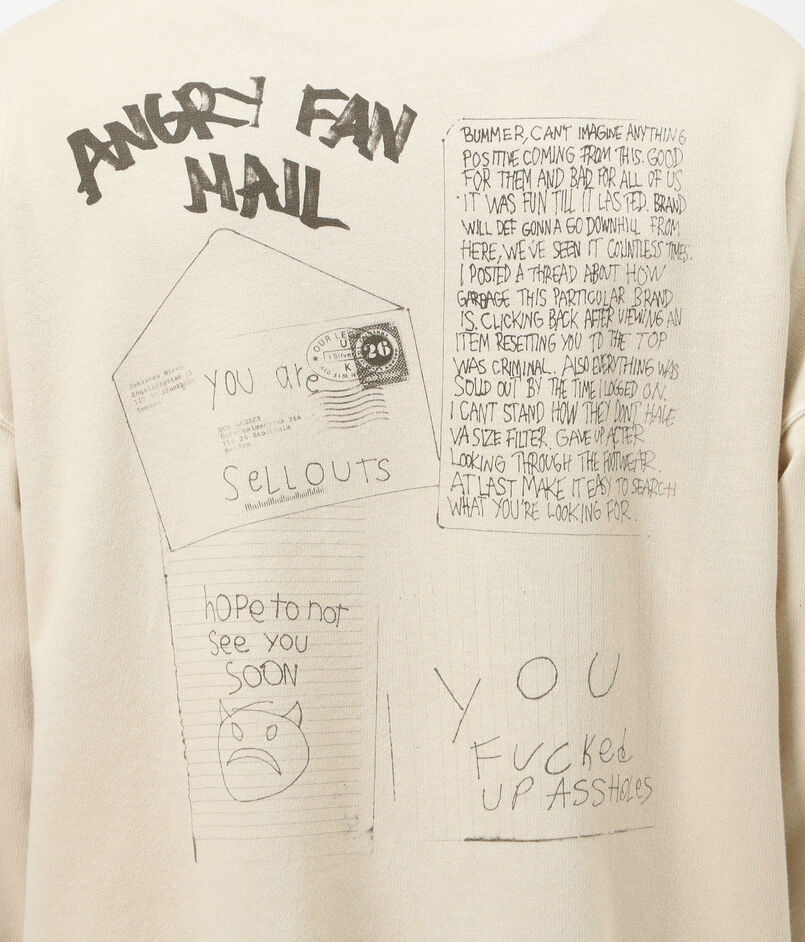 ソーシャルメディアの反響を風刺した「Angry Fan Mail」グラフィックが目を惹く、リラックスムードとモダンな表情を併せ持つ一着。