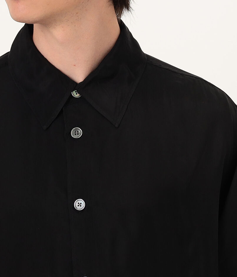 ミニマルなデザインがキュプラ素材の表情を引き立てる、計算された設計のシャツ。
