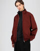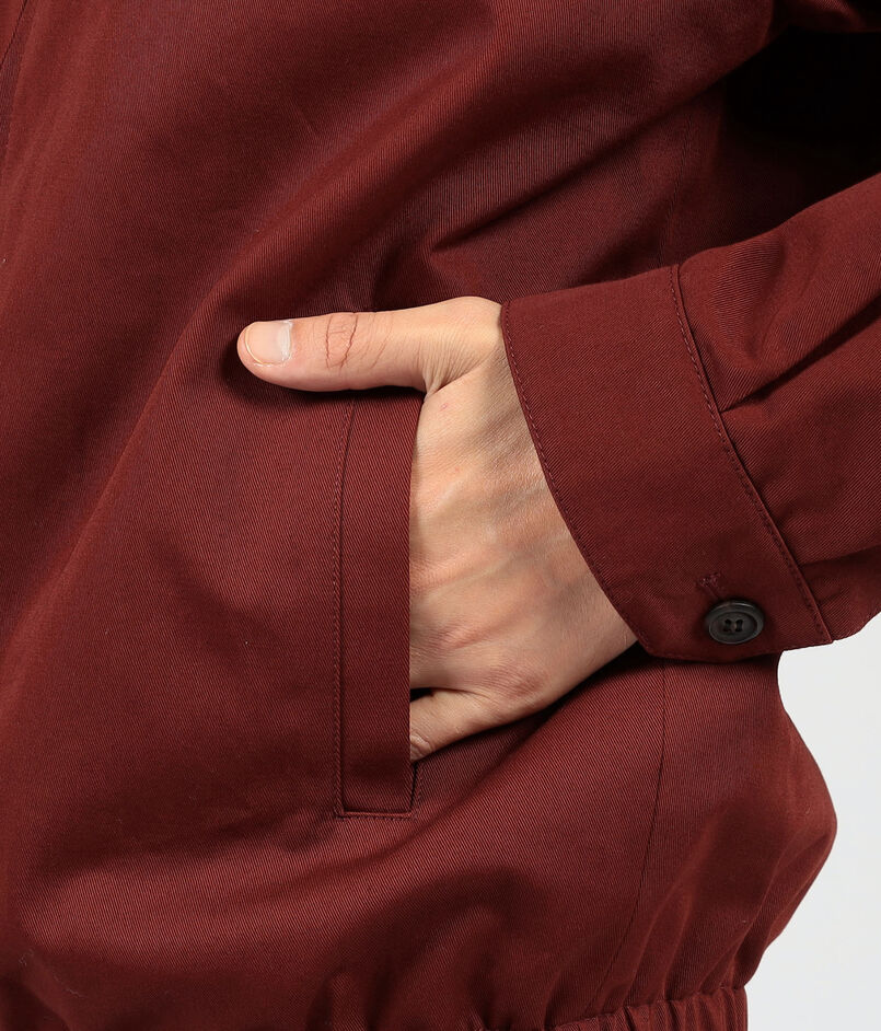 ほのかな光沢を帯びたイタリア製ツイル生地を使用しており、裏地とネックライン内側にはコントラストカラーが配されています。