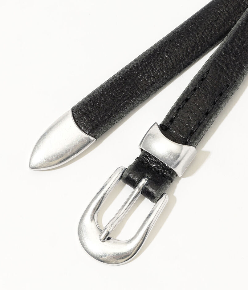 特徴的なウエスタン調のバックルはくすんだ風合いでスタイリングに馴染み、天然皮革ならではの唯一無二の表情が魅力です。