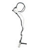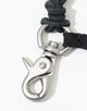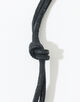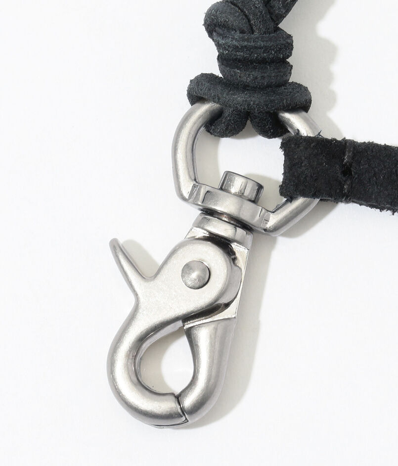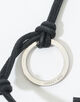連なるレザー紐の結び目とメタルリングのコンビデザインに、個性が光るアクセサリー。
