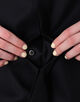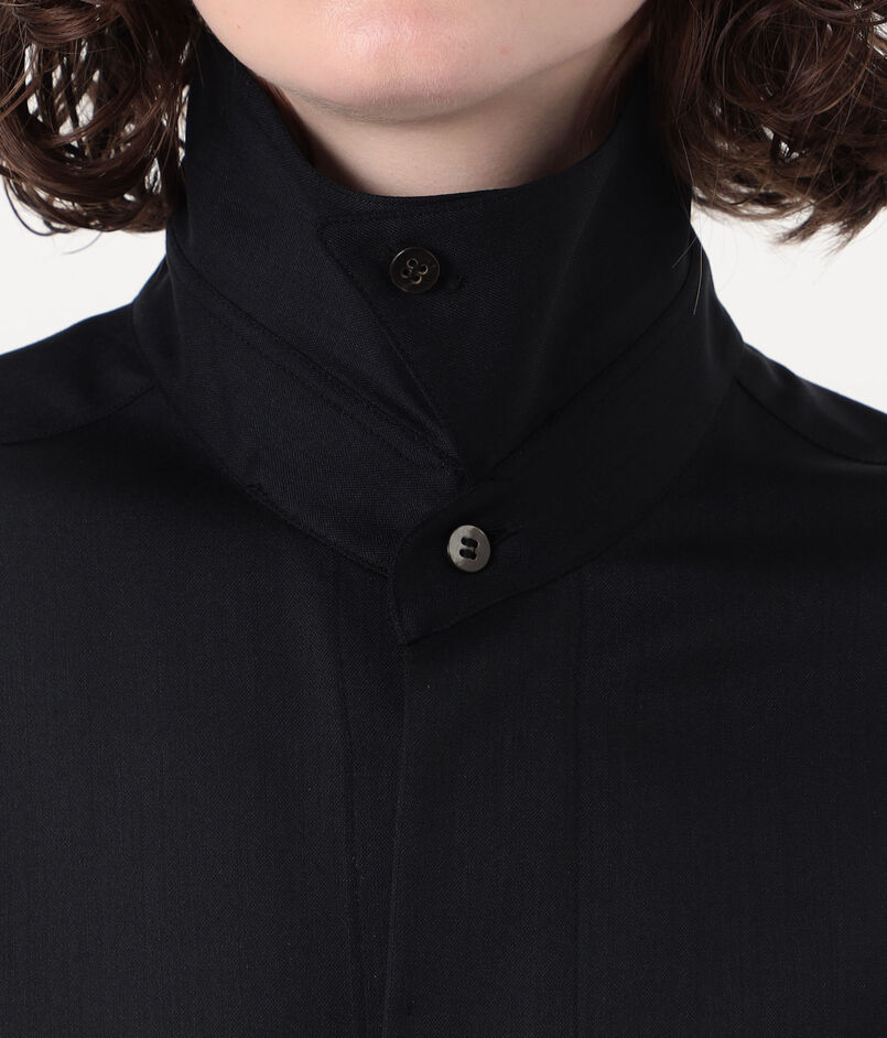 襟先のボタンを留めてハイネックとしても着用可能です。