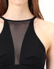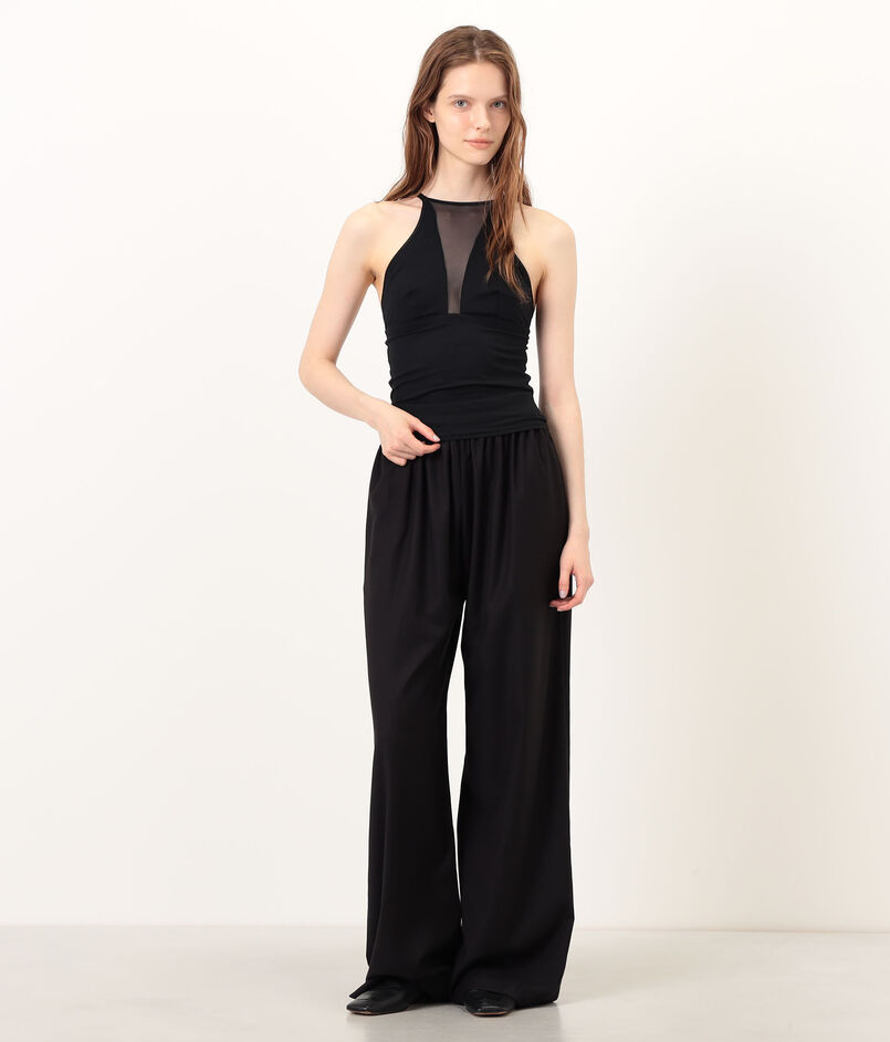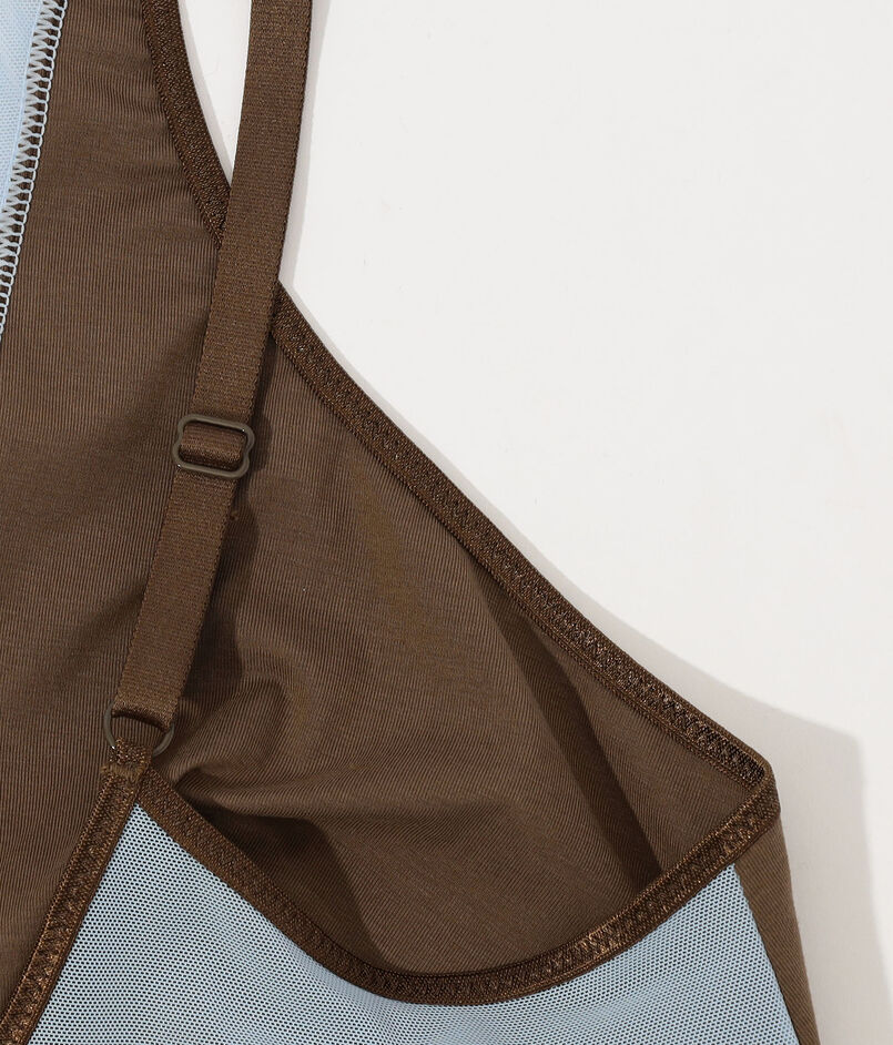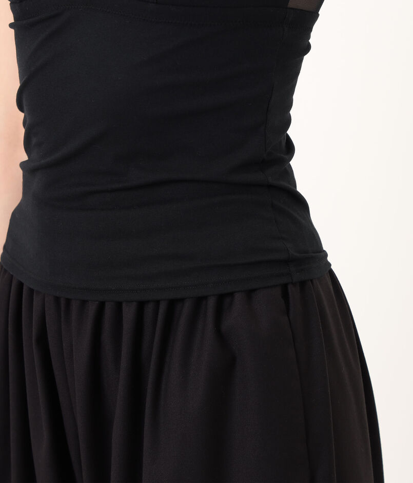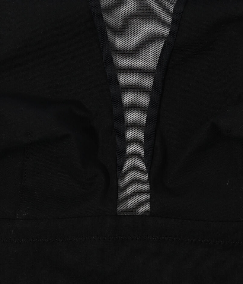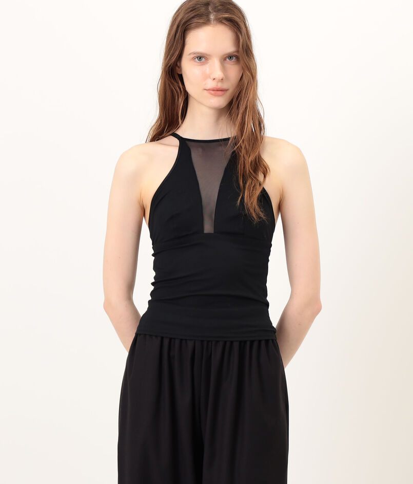肌当たりの心地よいスムース生地と透け感のあるセンシュアルなネット素材の、切り替えデザインが特徴です。