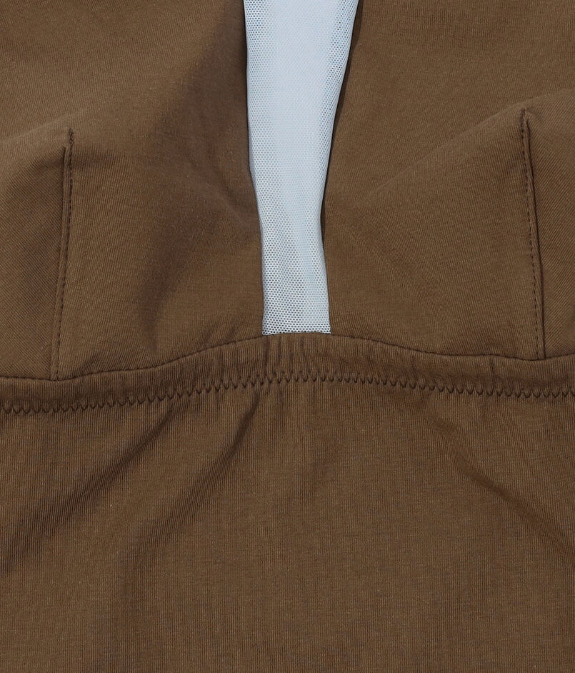 ウェアのあきに合わせたレイヤードスタイルはもちろん、一枚でワイドボトムやデニムとヘルシーにスタイリングするのもおすすめ。