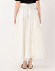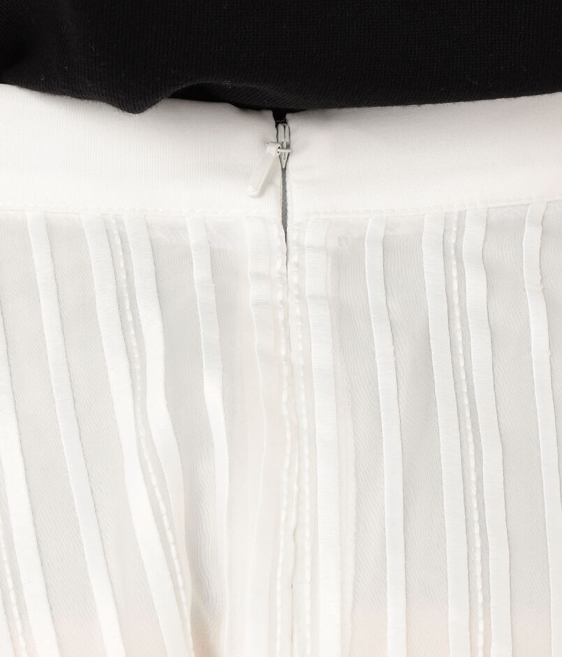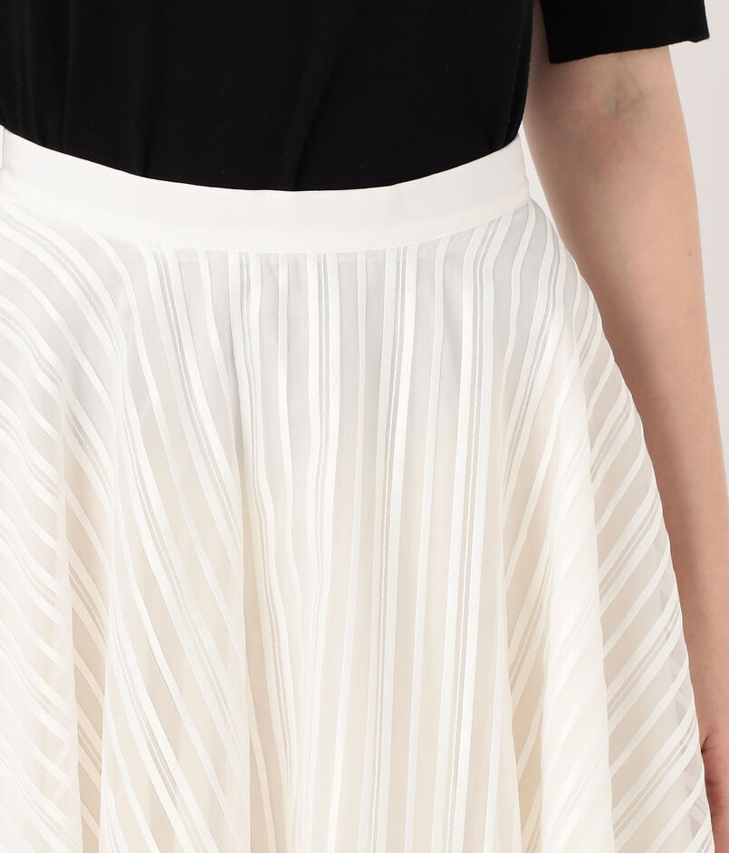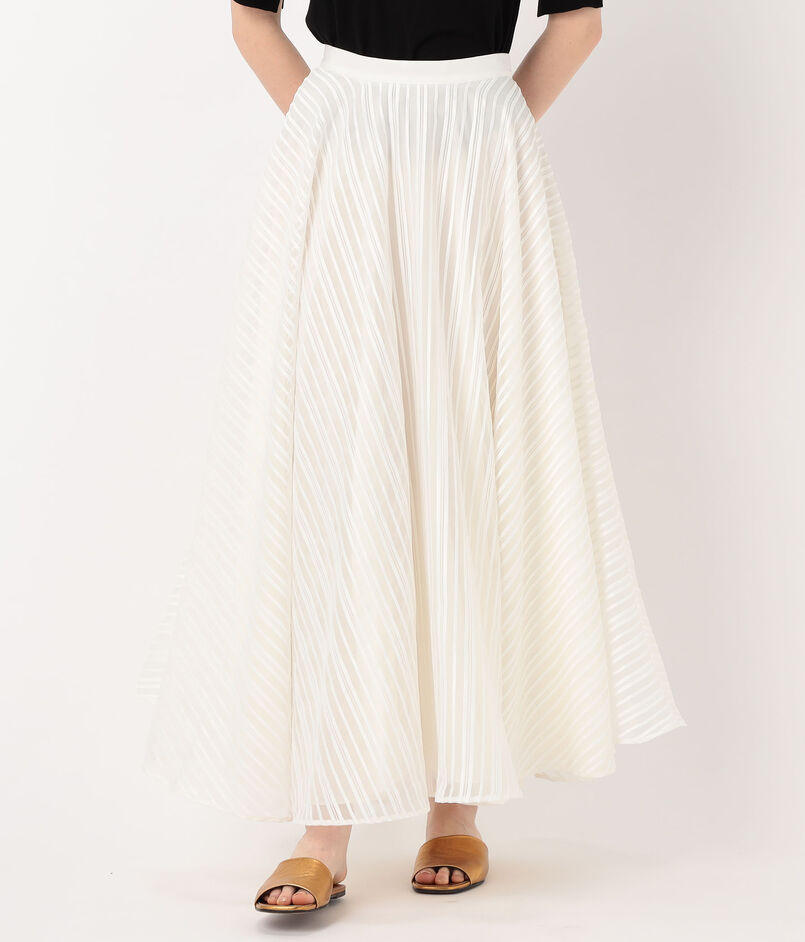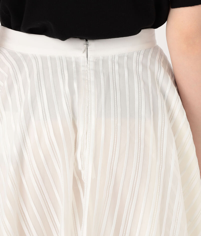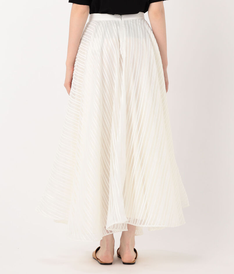 ハイウエストのすっきりとした腰回りと、裾に向かって大胆に広がるフレアラインが美しい対比を奏でます。