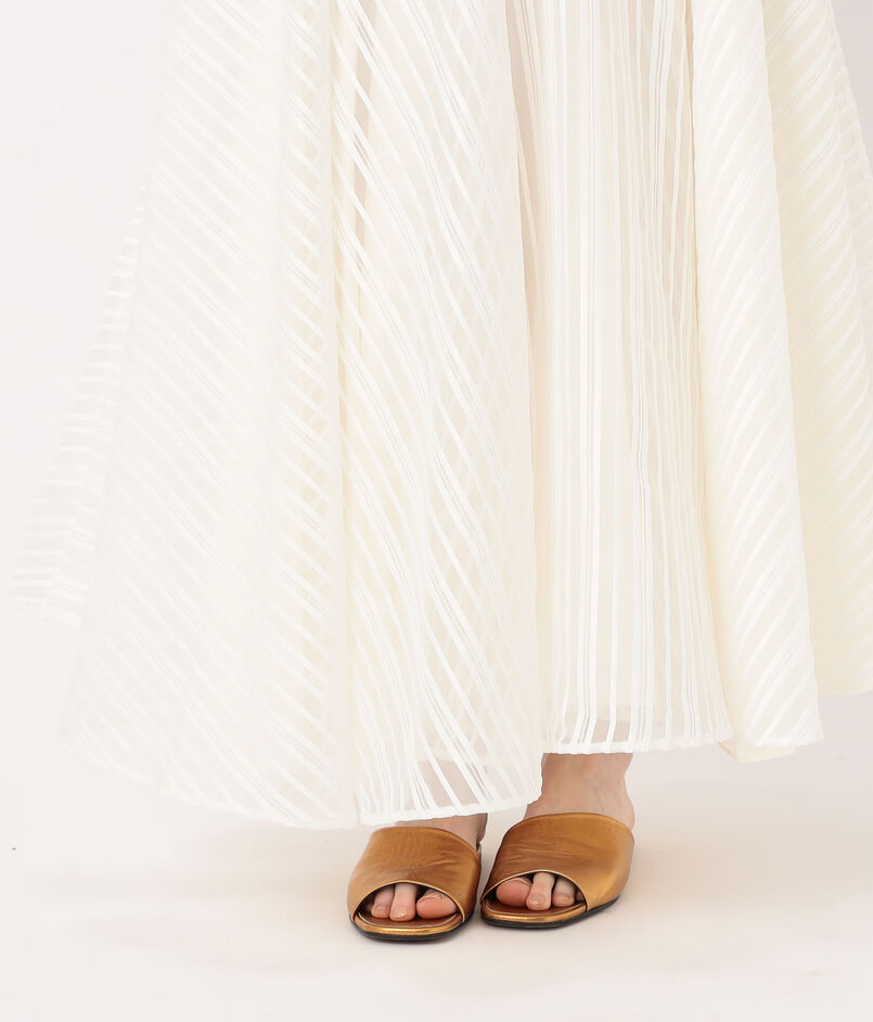 計算されたボリュームにより、歩くたびに生地が大きく波打ち、圧倒的に優雅な躍動感を演出。