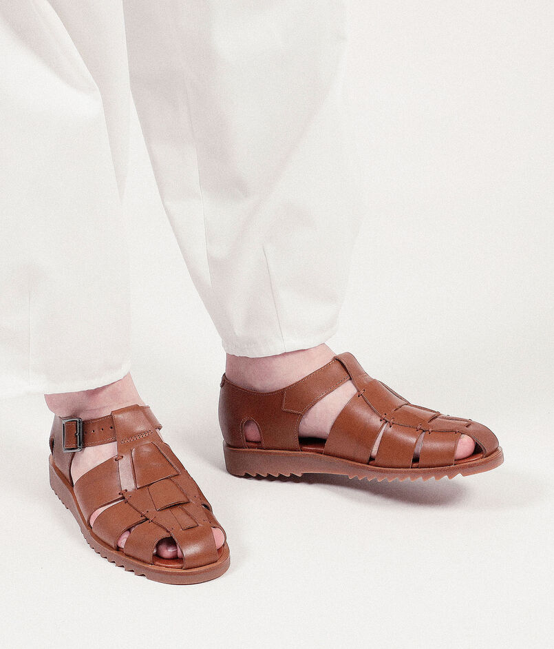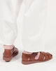 存在感のあるワイドレザーの編み込みが、足元をヘルシーに演出します。