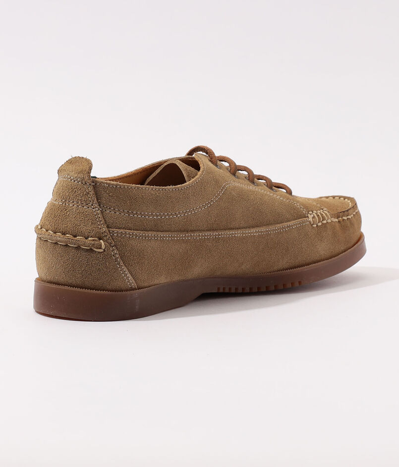 甲の低いフォルムや、キッカーバックのディテール、一枚革のアンラインド仕様といったディテールは「バース」譲りで、濡れた甲板上でも滑りにくいうえ、あまり足音が出ないよう設計されたマリンソールを縫い付けてあるのも同様です。