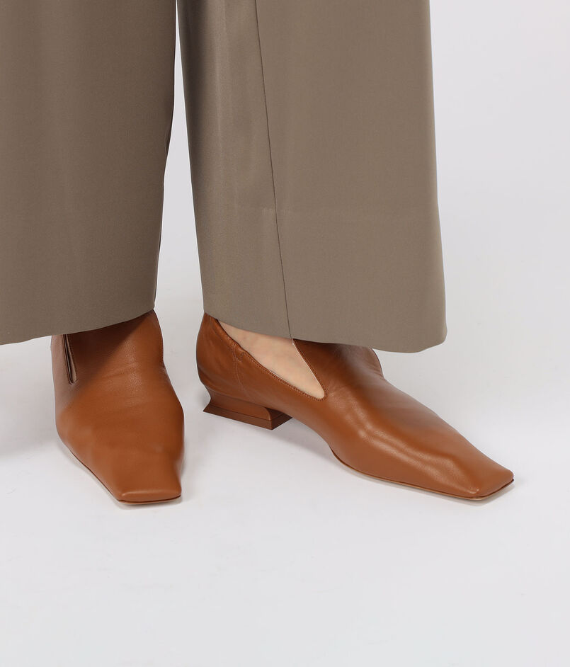 モダンで芸術的なヒールとスクエアトゥ、サイドから見た時の美しいVカットが、エレガントで洗練された印象をもたらします。