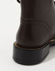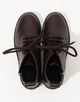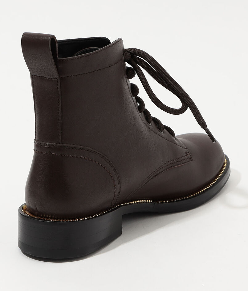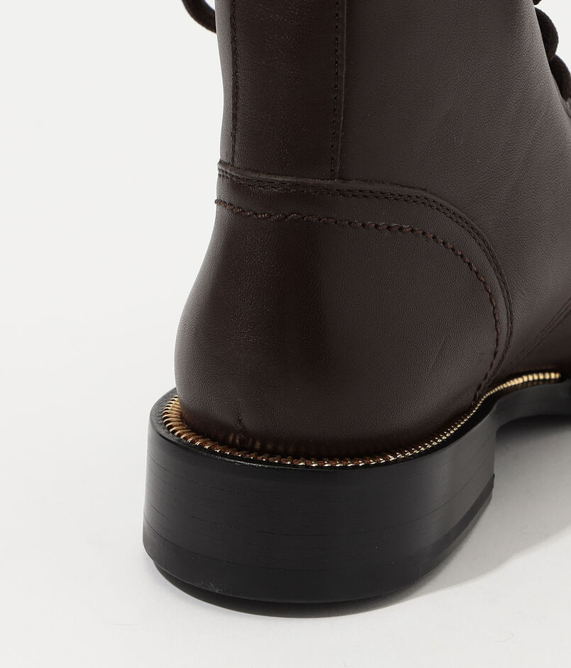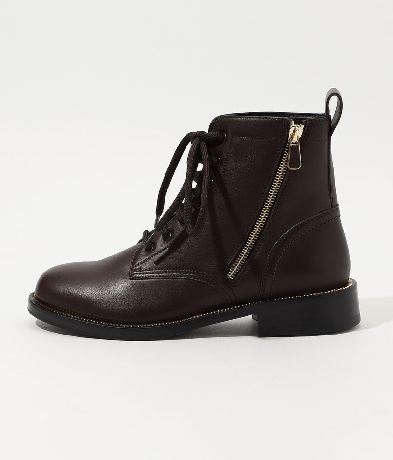 ラウンドトゥのレースアップアンクルブーツ。
