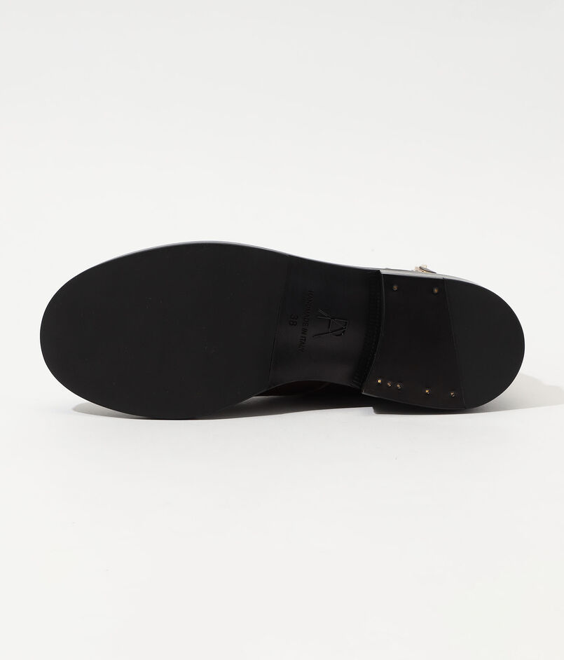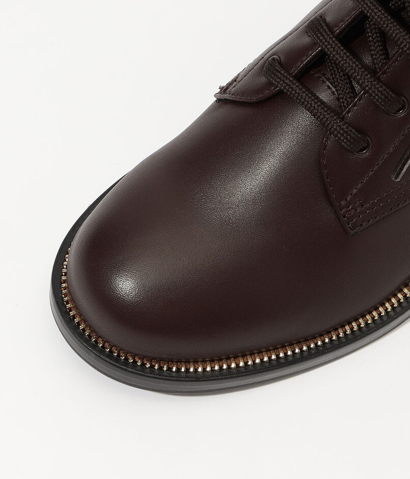 ウェルトの内側についたメタルジップインレイと、メタルサイドジップのディテールがポイントになっています。