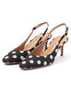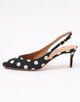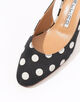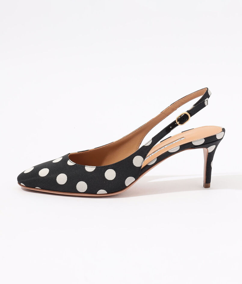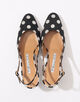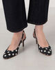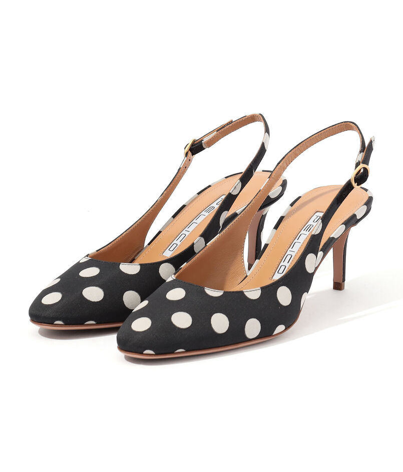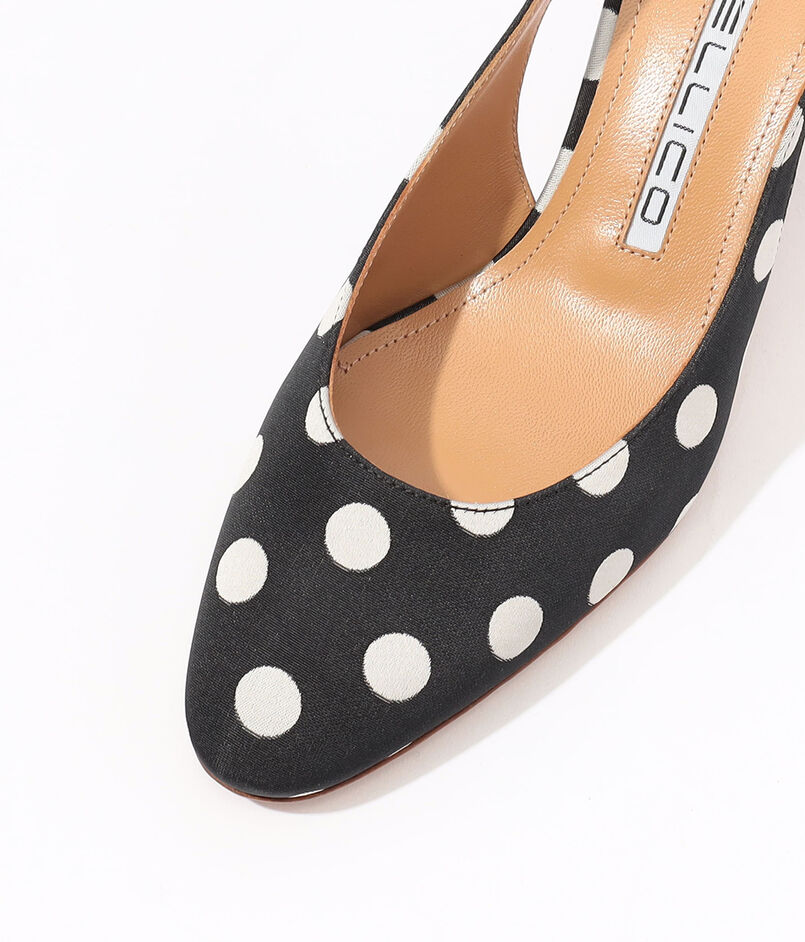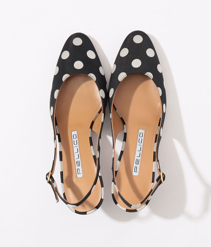 足元から洗練された女性らしさとシーズンのムードを呼び込む、ドット柄のミュールサンダル。