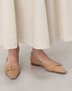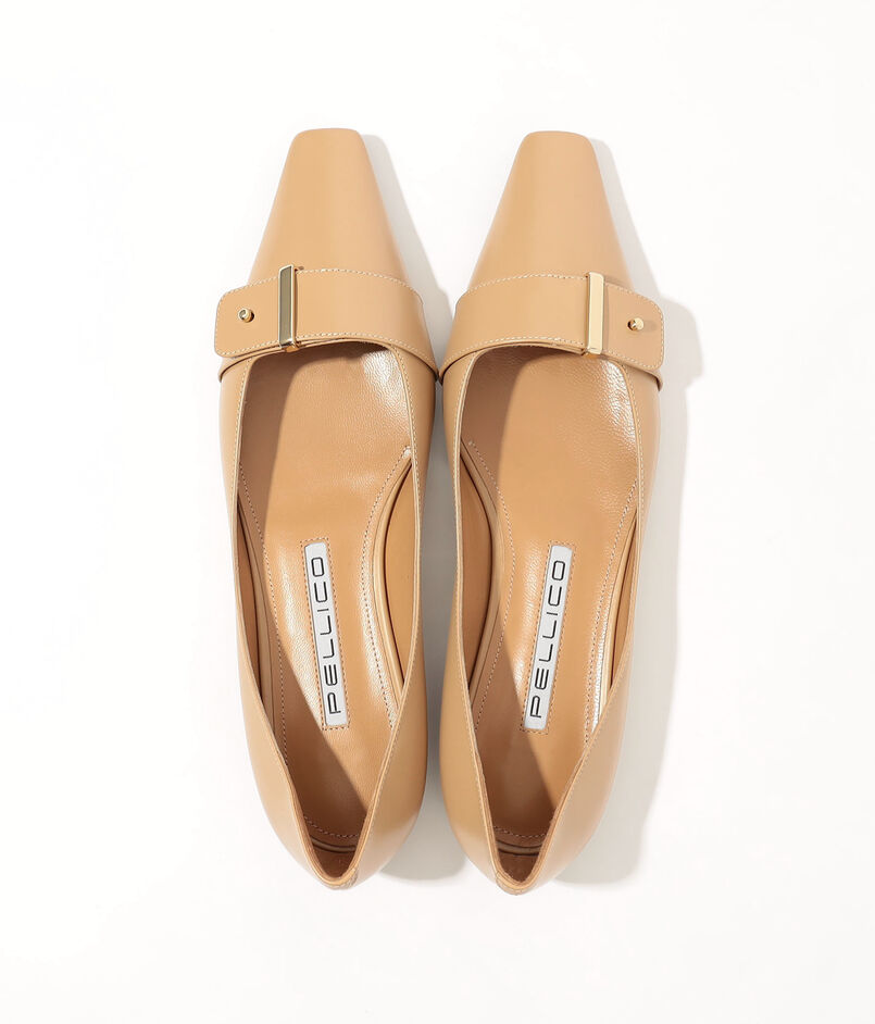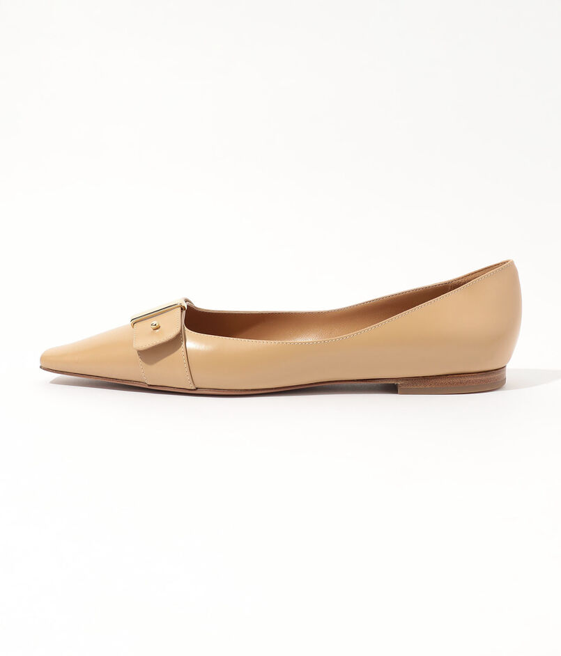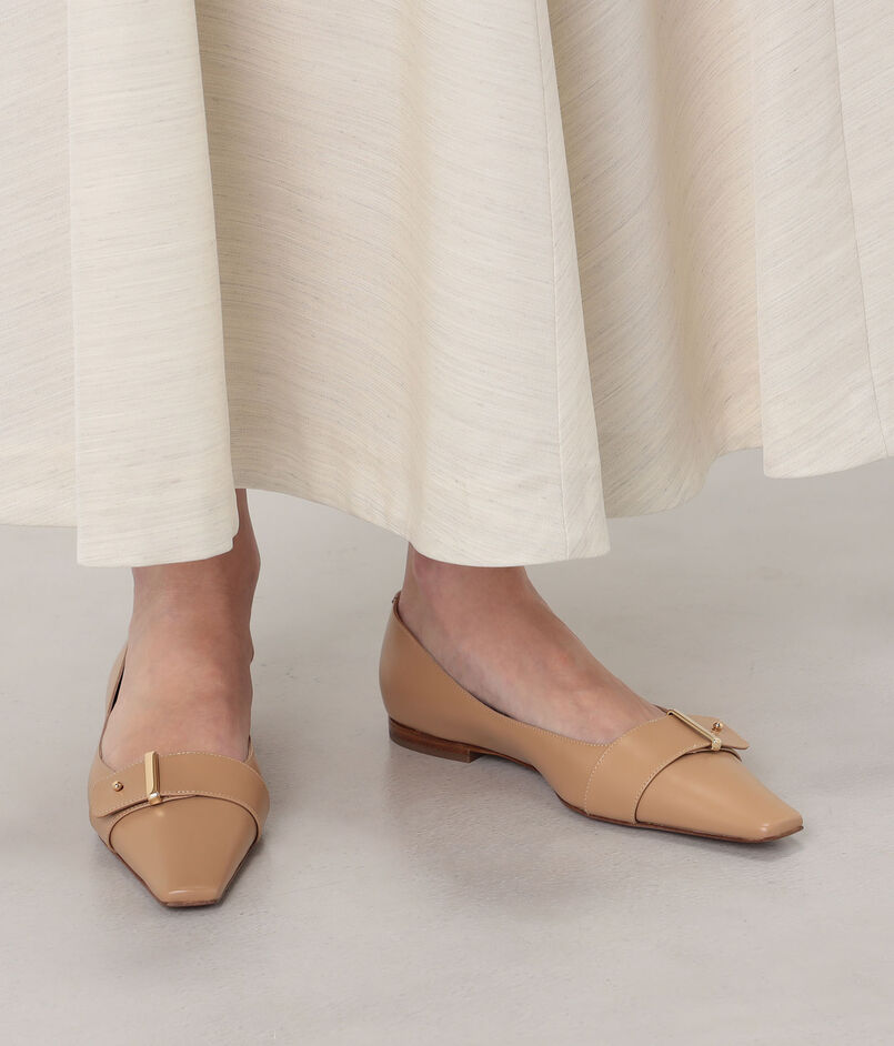 ミニマルなセミスクエアトゥが美しい表情を描く、ブランドの象徴的な木型『DAMA』フラットシューズ。