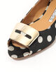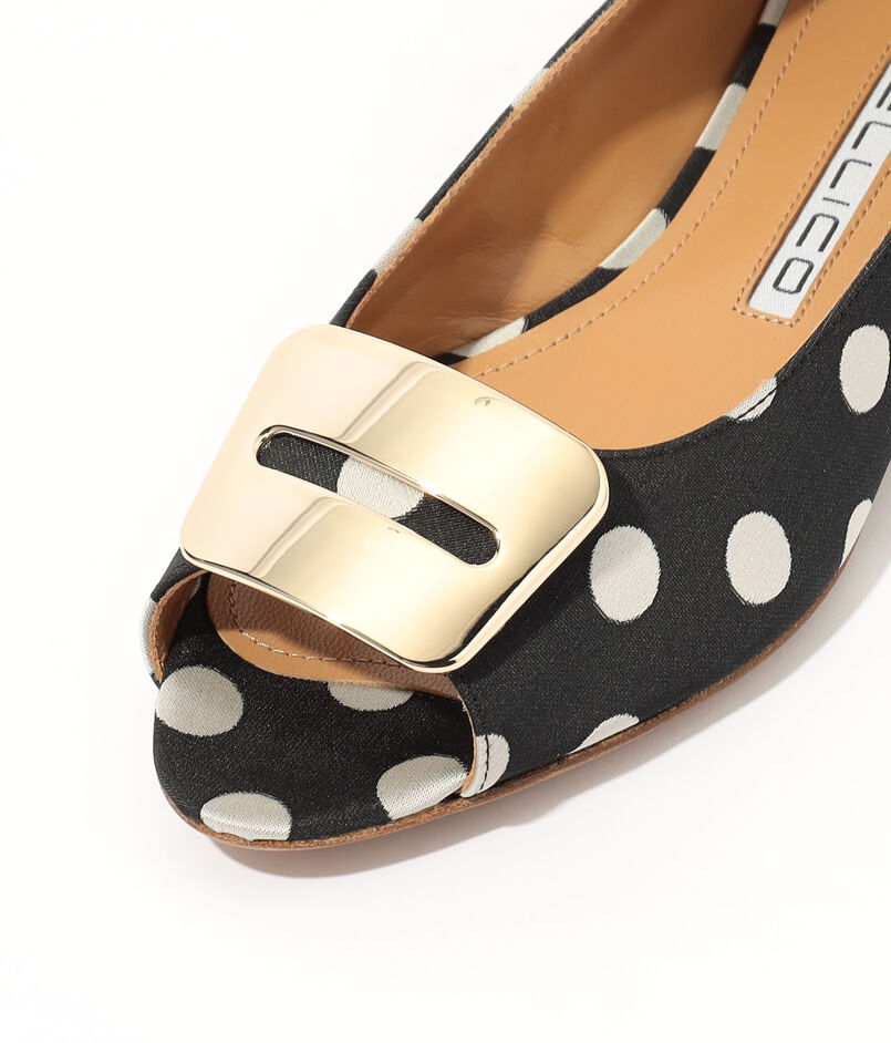 アイコニックなバックルモチーフを添えたつま先は、あえて捨て寸を長めに設計。スリムでシャープな木型の美しさを強調しながらも、ゆとりのある履き心地を損なうことなく、甲のラインを最も美しく見せる構築的なシルエットに仕上げられています。