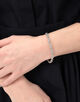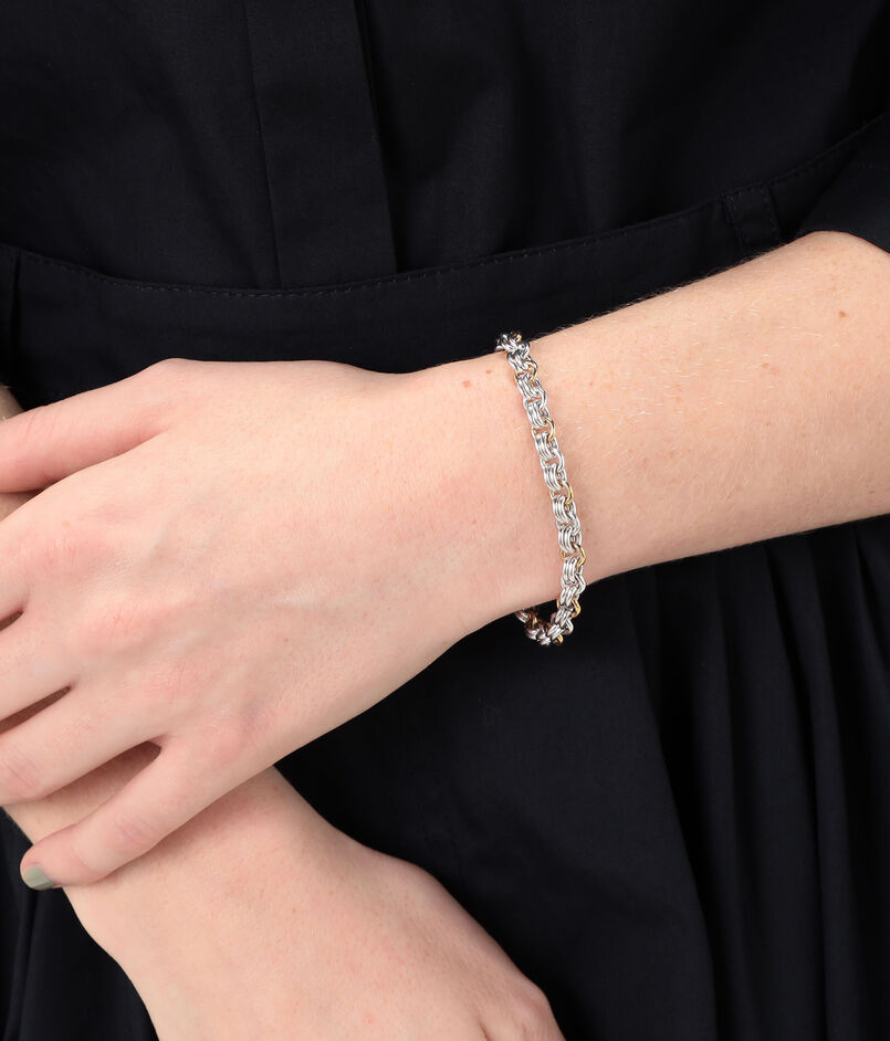 異なるボリュームのチェーンブレスレットとのレイヤードスタイルもおすすめで、手元のコーディネートに奥行きを与えてくれる一本です。