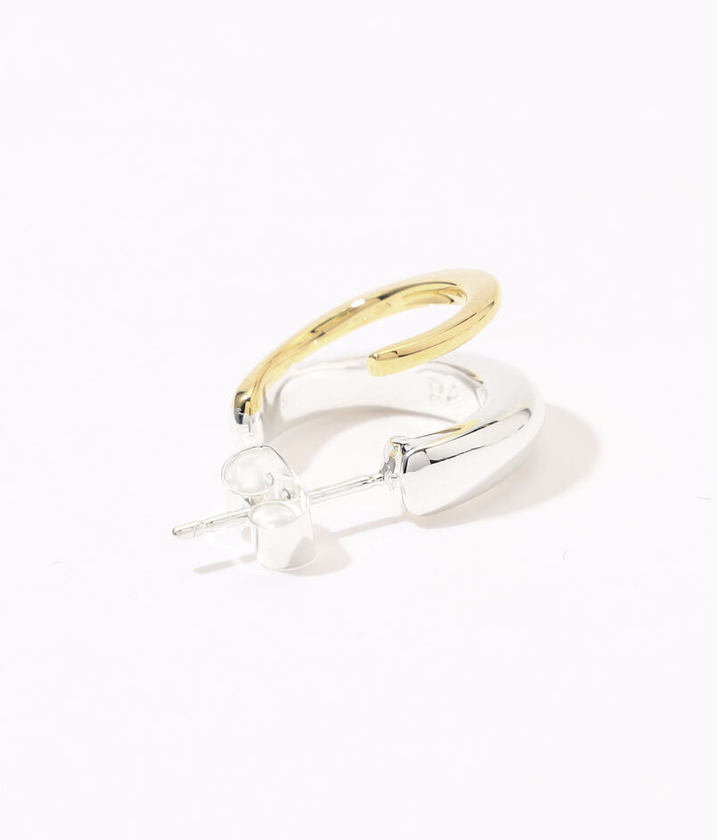 異なるメタルカラーが織りなすコントラストが、耳元に洗練された存在感を添えます。