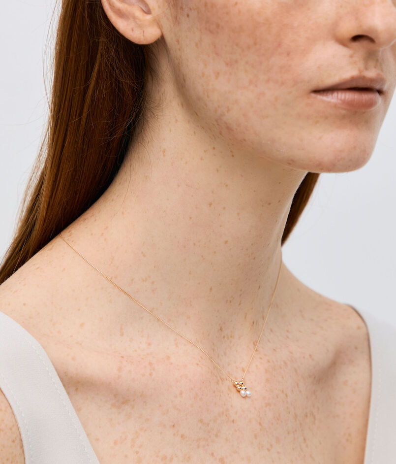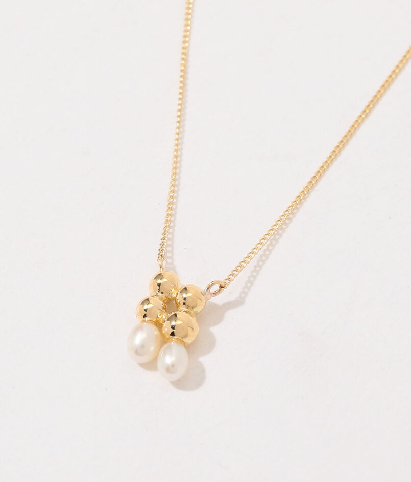 ゴールドとパールを木の実のようなデザインでナチュラルな存在感 を放つネックレス。