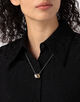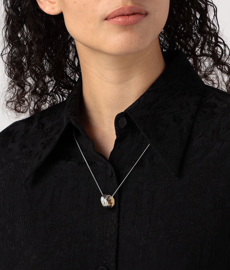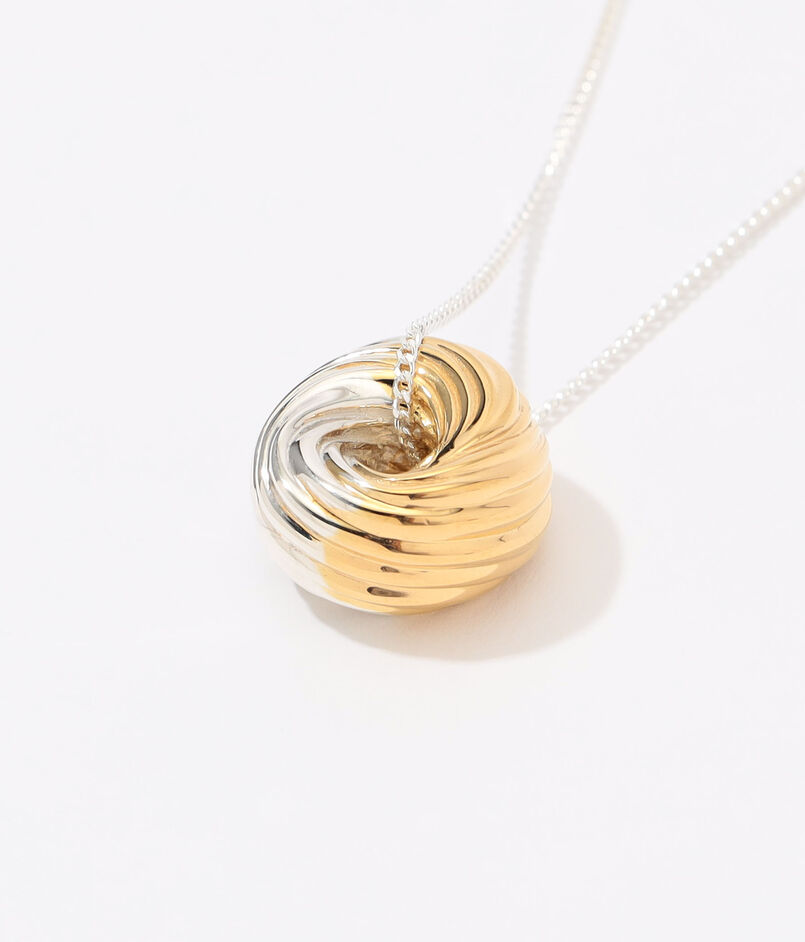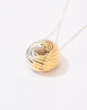 ゴールドとシルバーのコンビネーションがアクセントになっているバイカラーネックレス。