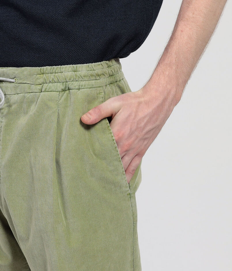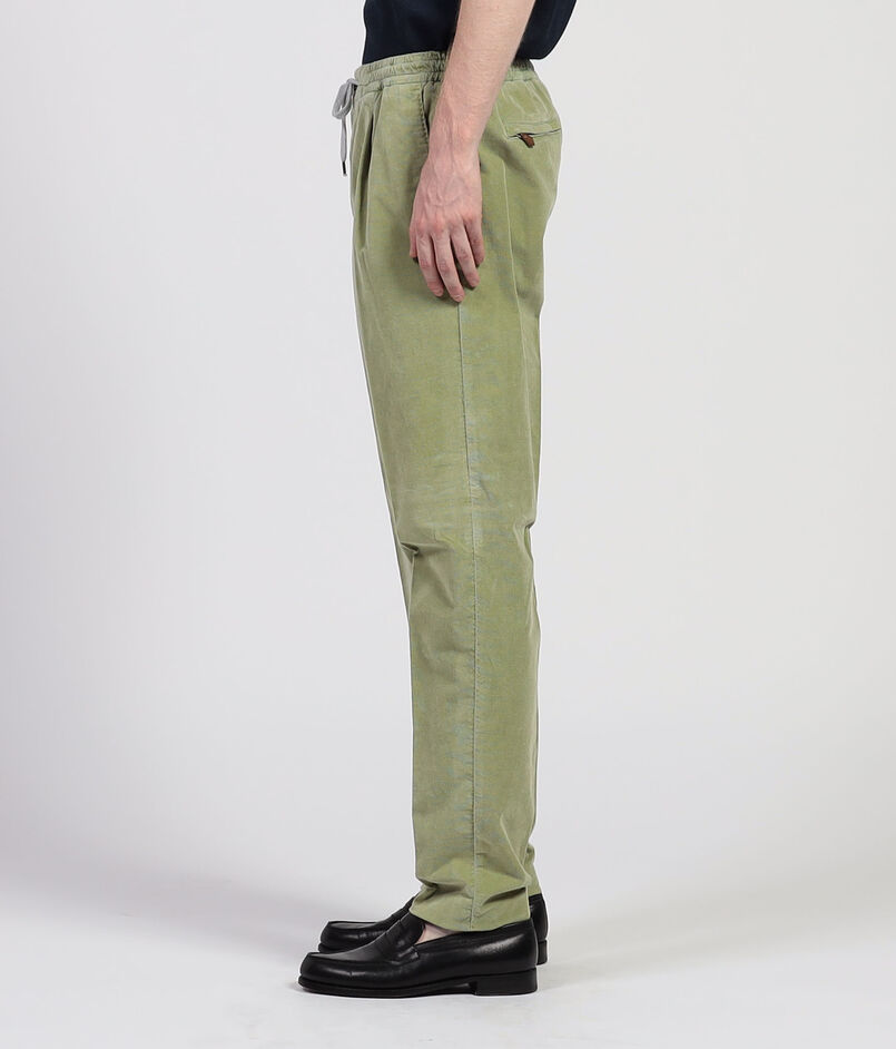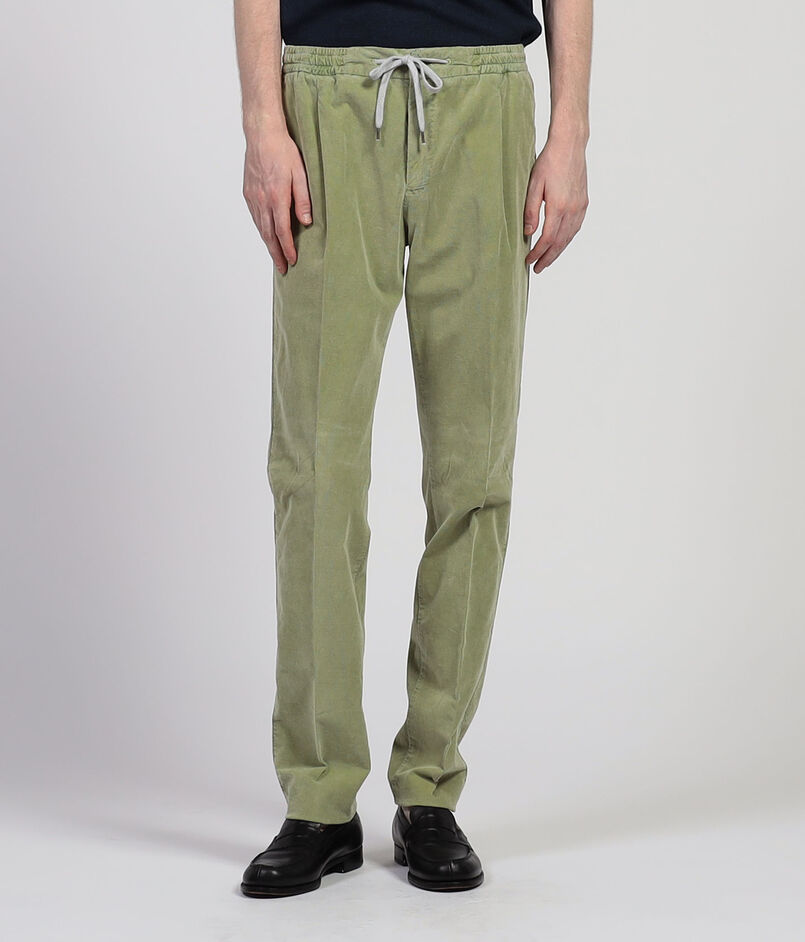 ストレッチの効いた軽めのコーデュロイ素材を使用したイージースラックス。