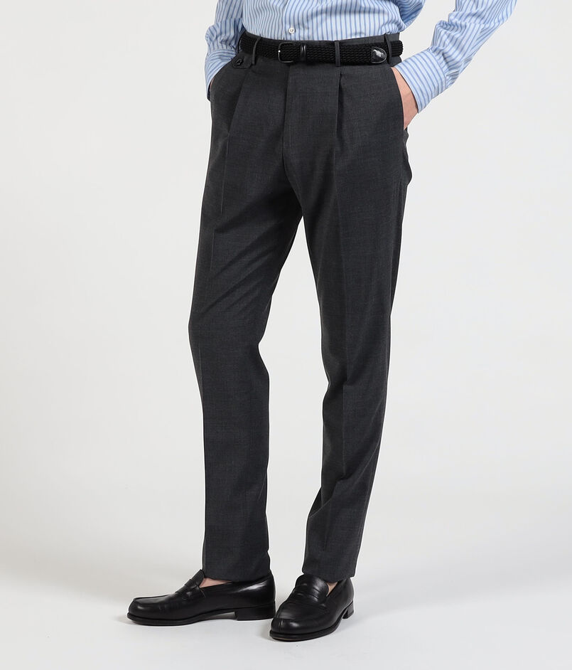 それまでクラシック一辺倒だったドレスパンツの世界に、幅広いデザインソースから取り入れた多彩なバリエーションを揃え、 独自のデザインで世界観を演出。