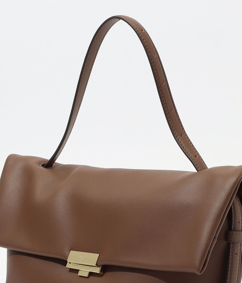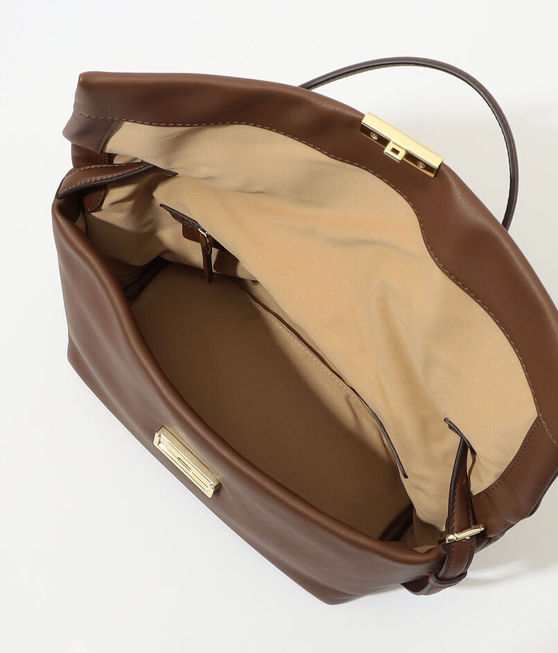 ハンドル金具は、ショルダーを外した状態でも美しく見えるようデザイン。