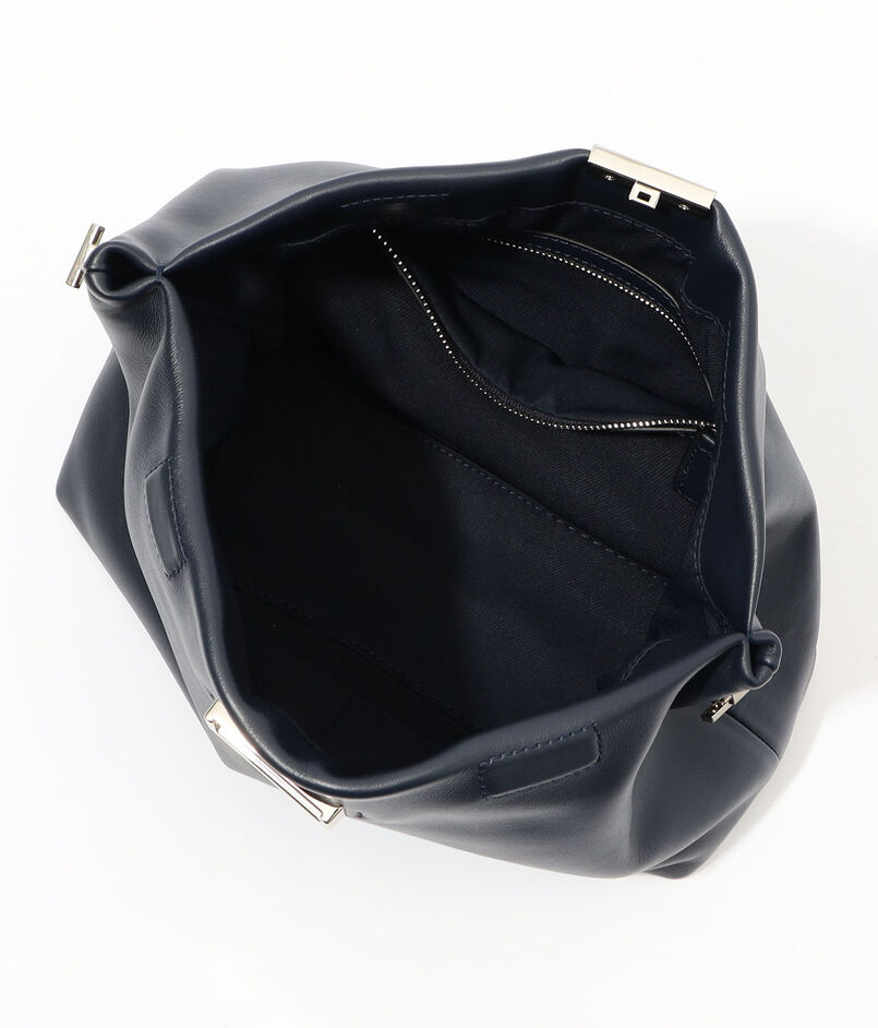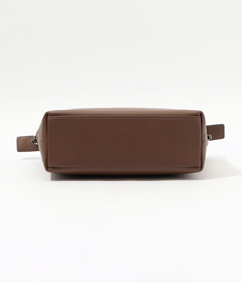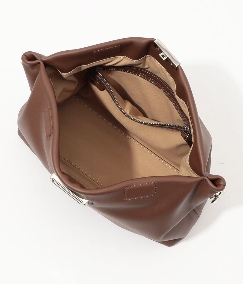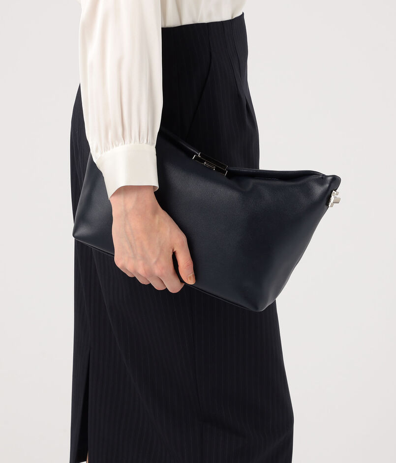 デザインされたハンドル紐金具は取り外した状態でもバッグ全体が美しく見える様デザインされており、クラッチバッグとしても活用できます。