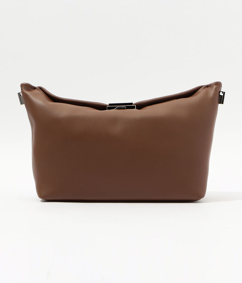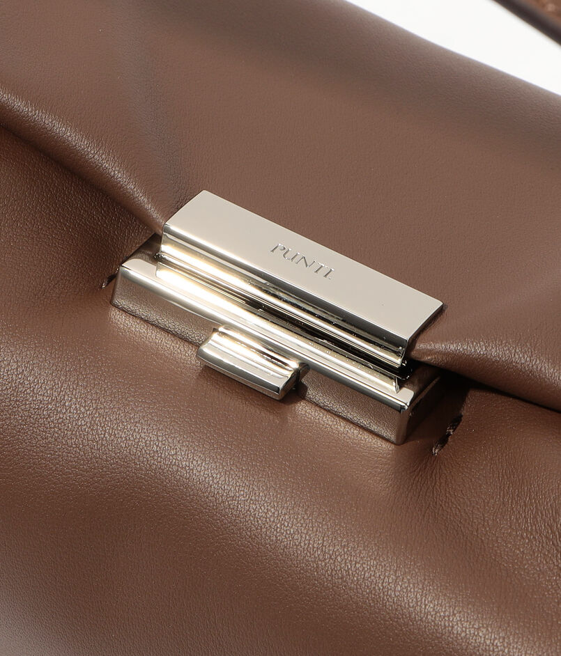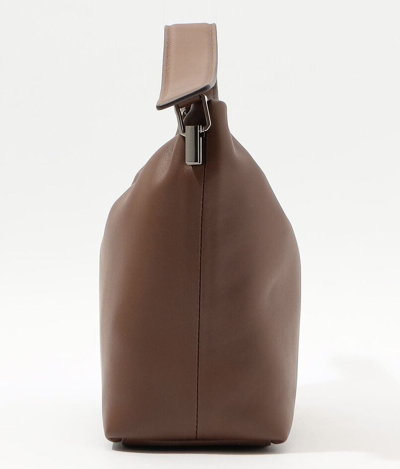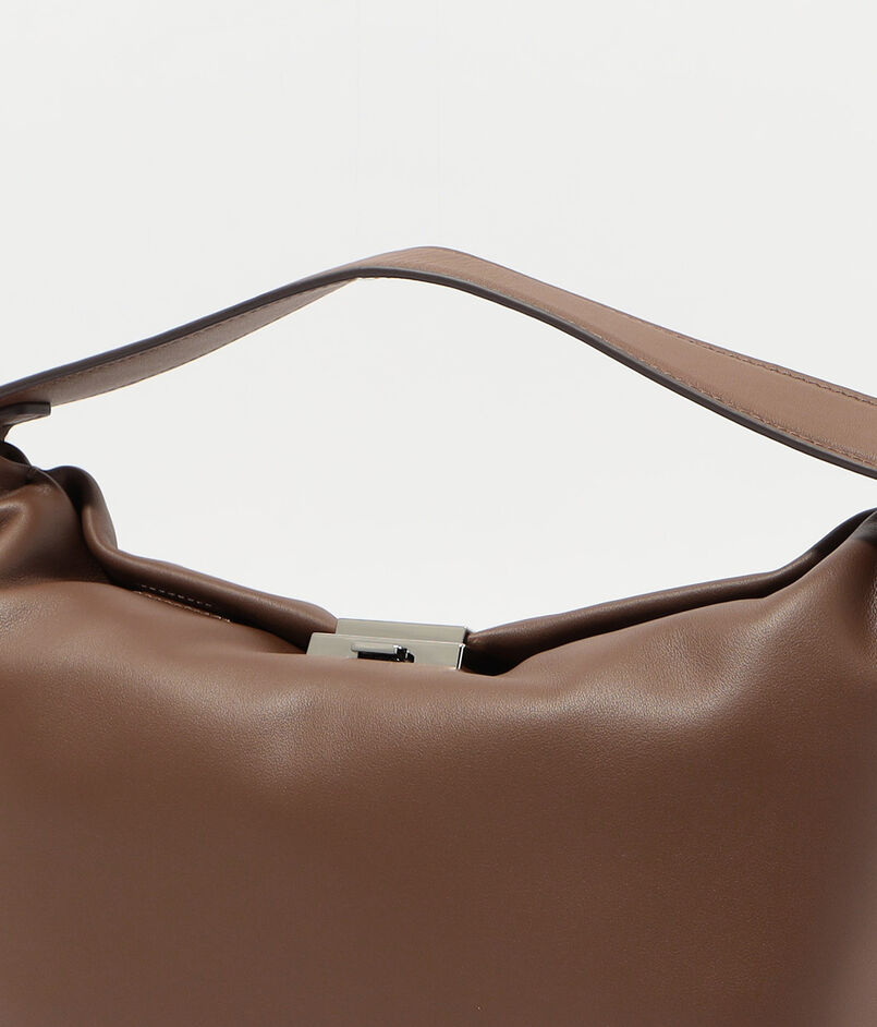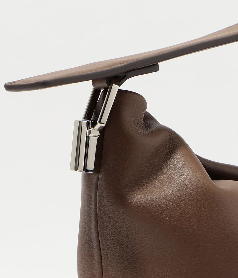 デザインされたハンドル紐金具は取り外した状態でもバッグ全体が美しく見える様デザインされており、クラッチバッグとしても活用できます。