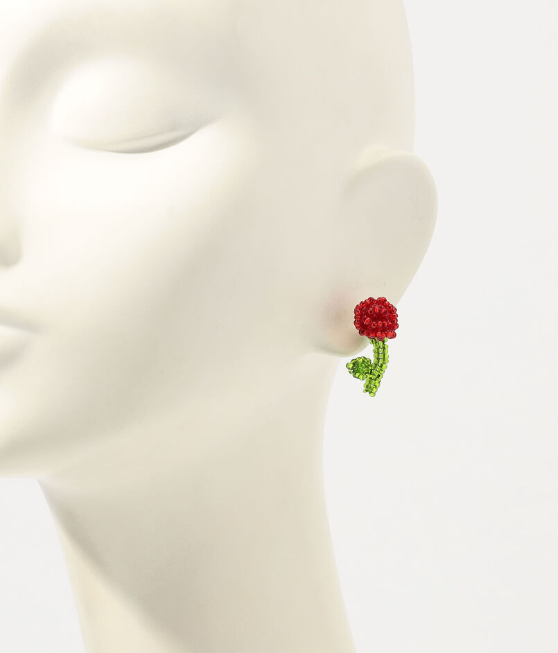 グアテマラでハンドメイドされた、ローズモチーフの片耳ピアス。
