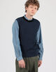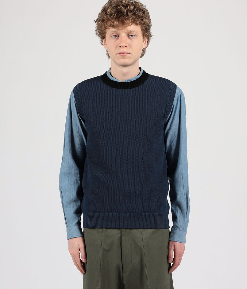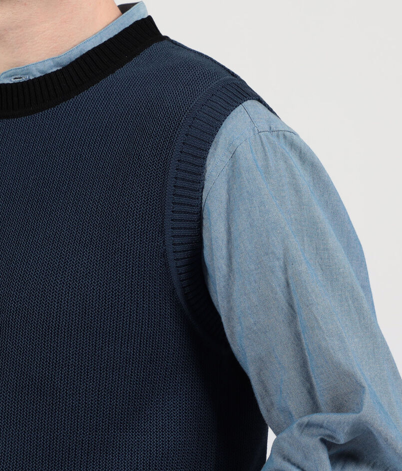 ジャケットやブルゾンのインナー使いはもちろん、カットソーやシャツとのスタイリングにもマッチします。