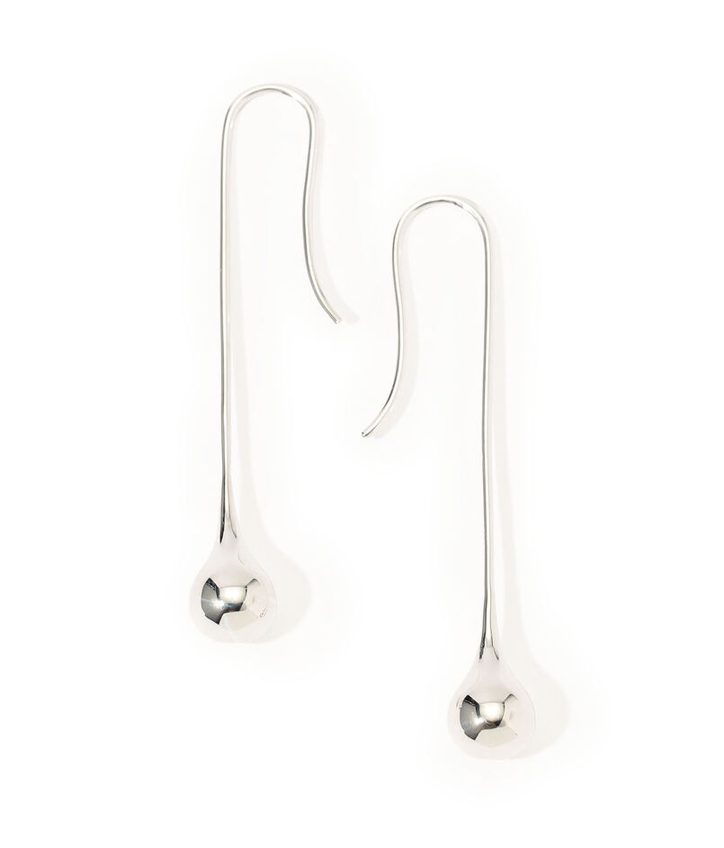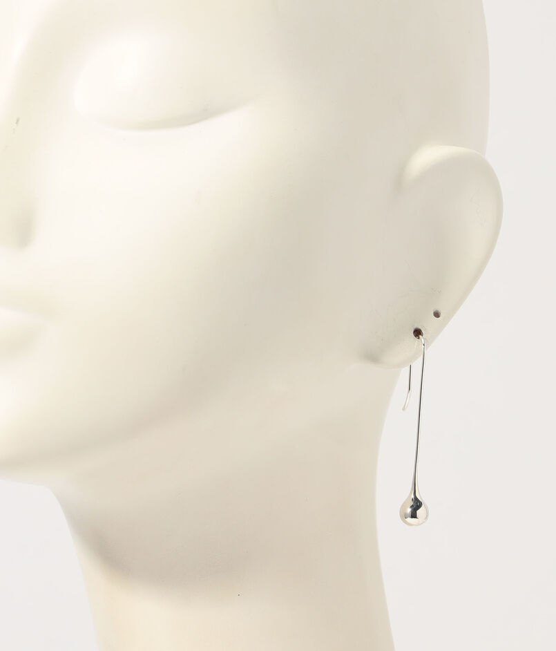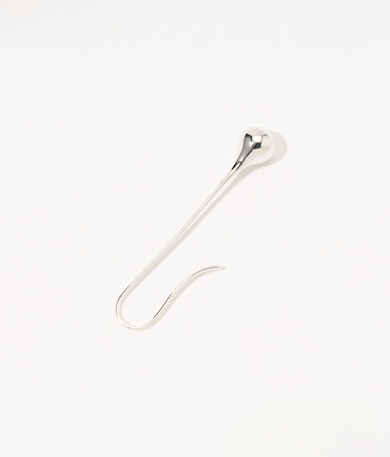 華奢なスターリングシルバーのフォルムがやわらかく下へとカーブし、先端にはさりげない雫型のモチーフが添えられています。