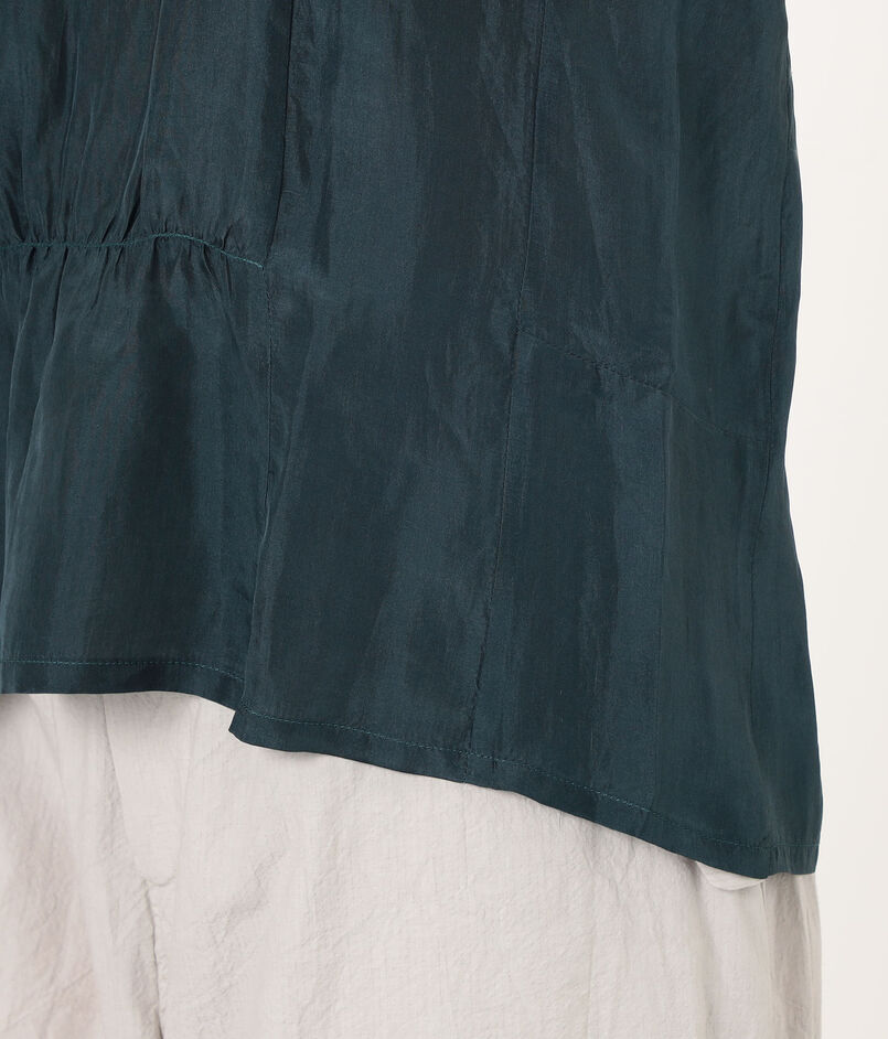 前後に寄せられたギャザーがポイントで、着用すると裾に自然なドレープが生まれ軽やかな印象に。