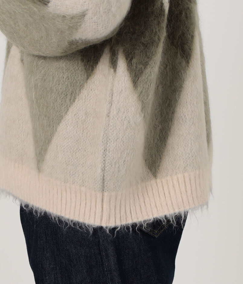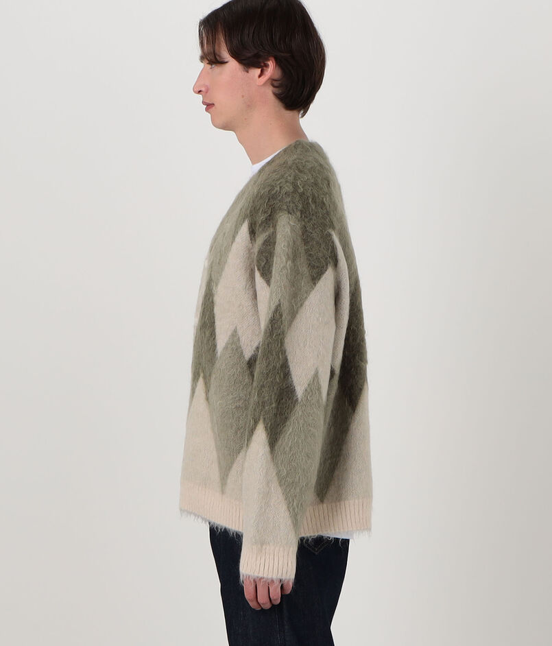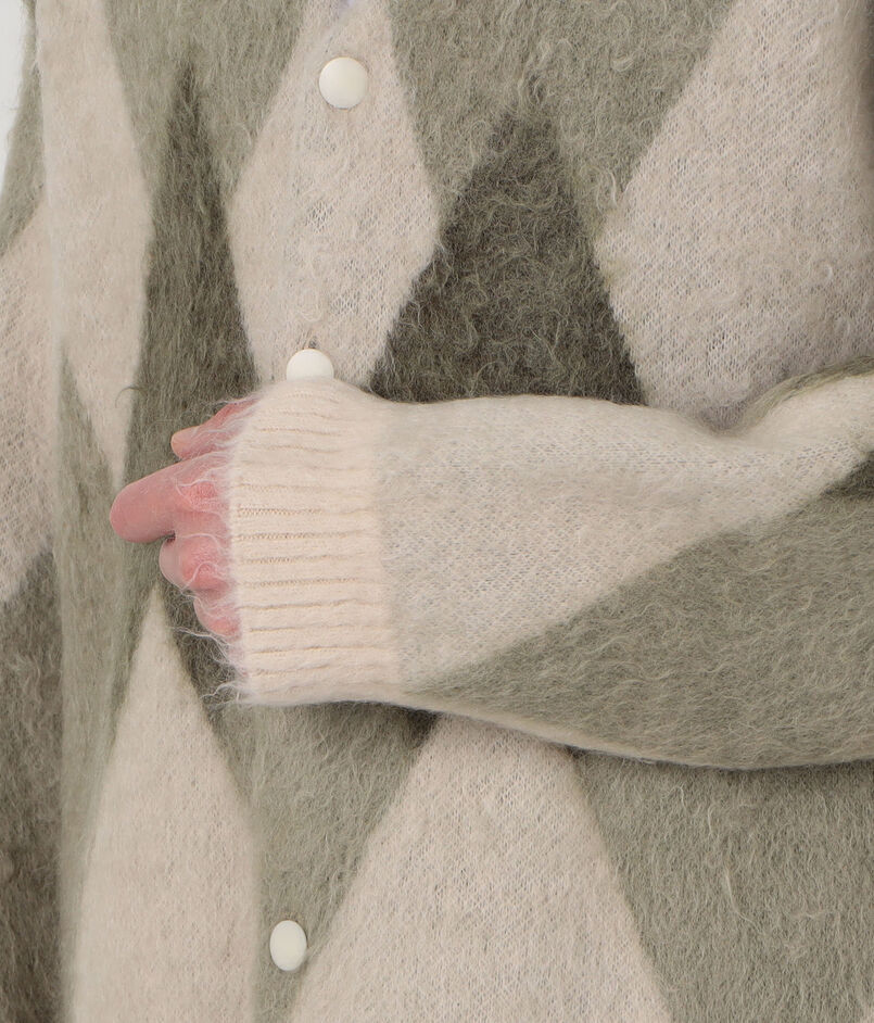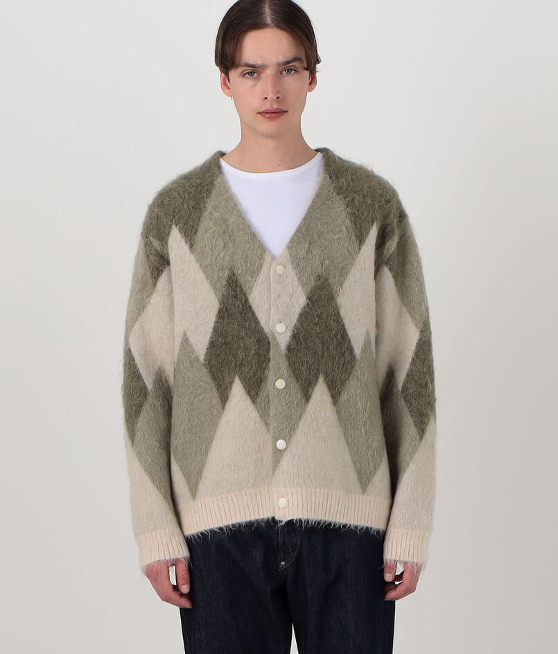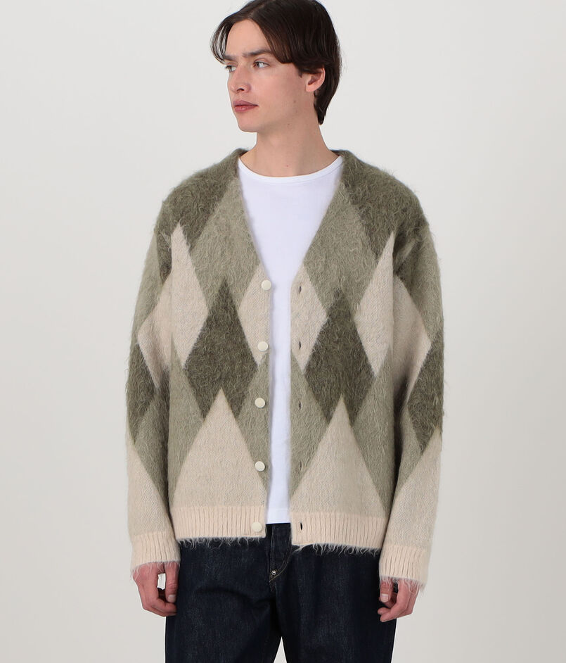 ROUTINE ヴィンテージ起毛 ダイヤモンド柄 カーディガン
