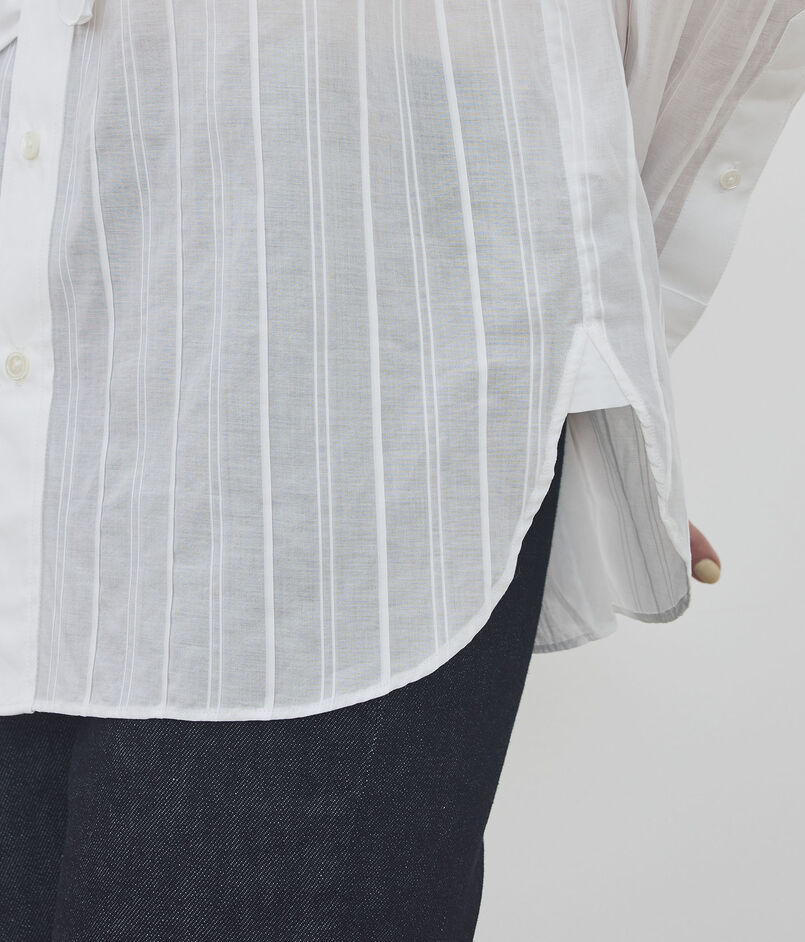 程よい透け感で、一枚ではもちろん、ジャケットと合わせたシックな着こなしもおすすめです。