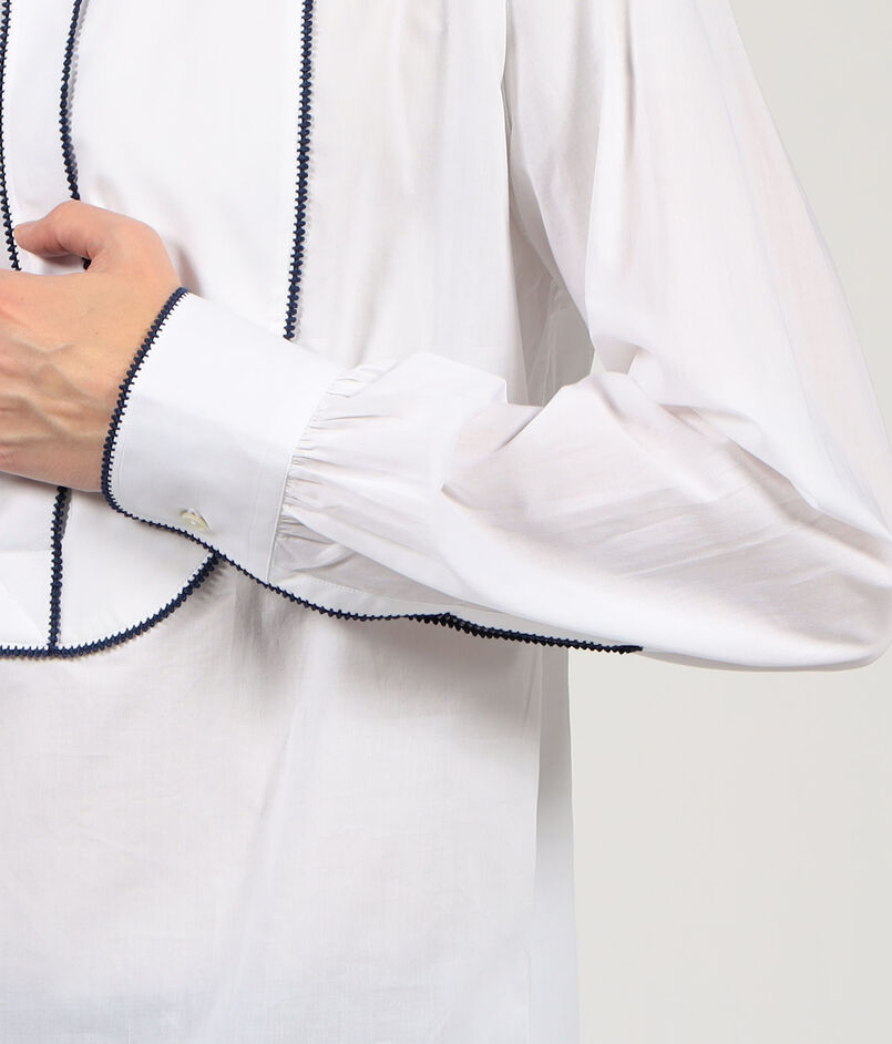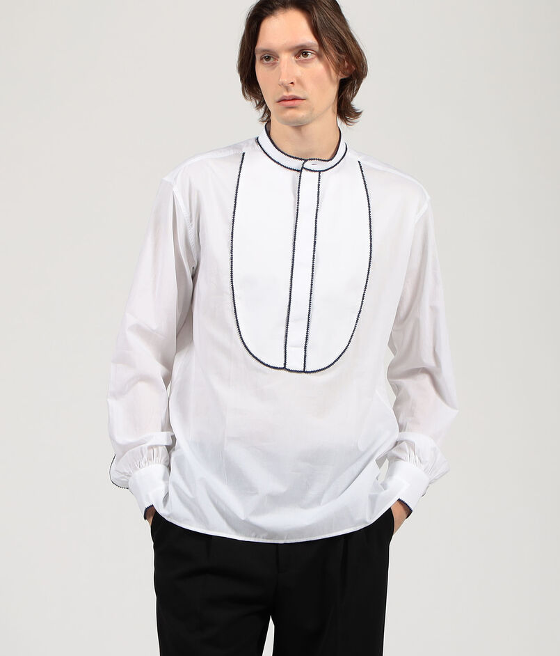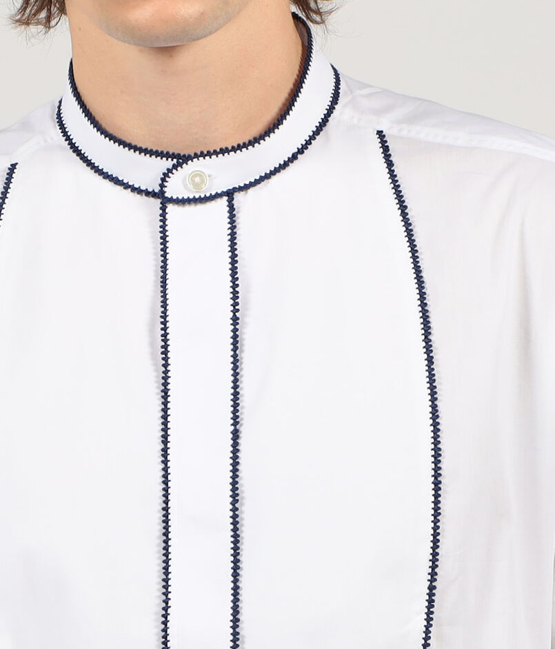 Sébline コットン バンドカラーパイピングシャツ