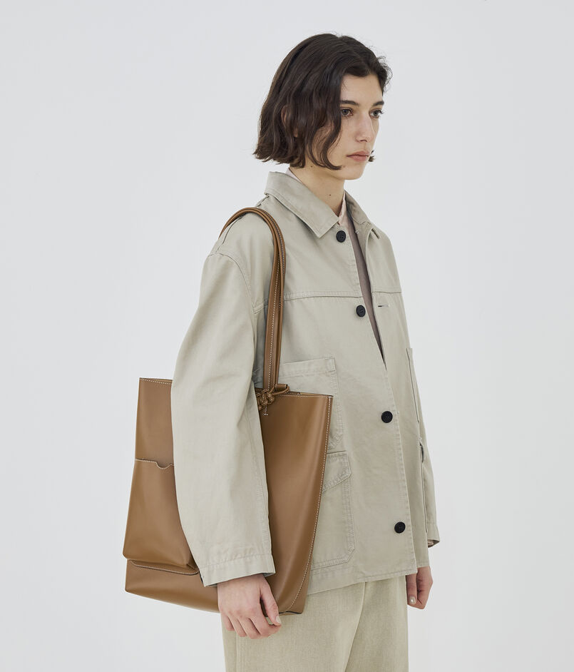 イタリア産の滑らかな牛革を使用したトートバッグ。