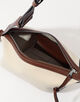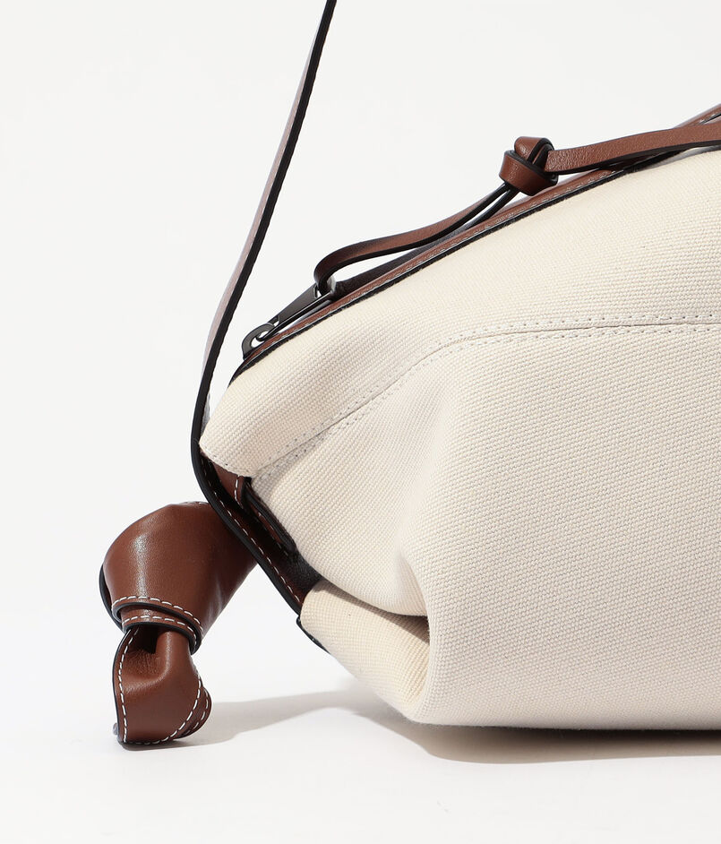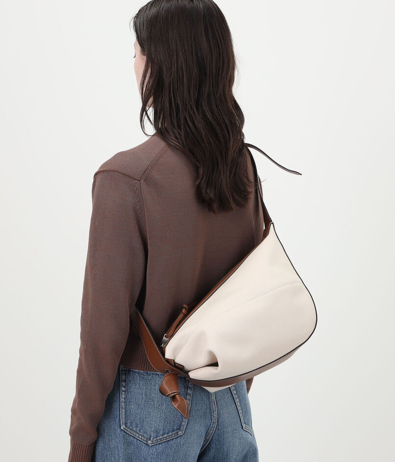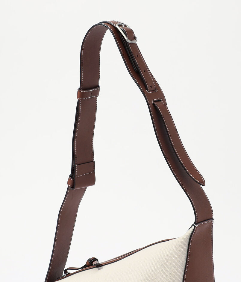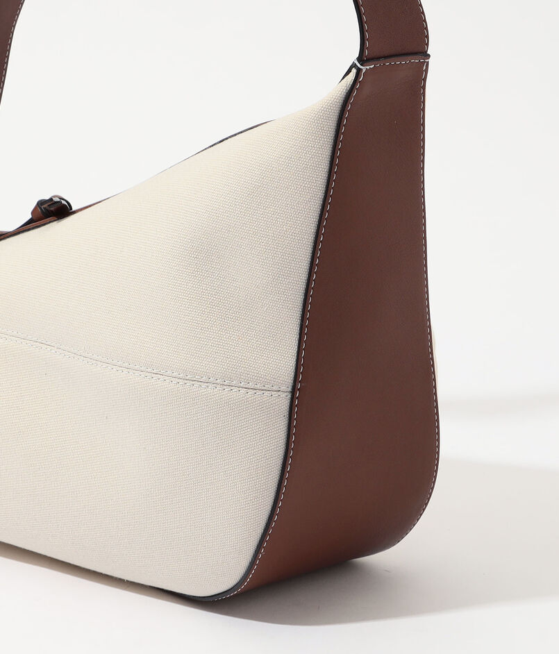 コットンのナチュラルな質感に、やわらかなイタリアンカウレザーが上品なコントラストを添えるデザイン。