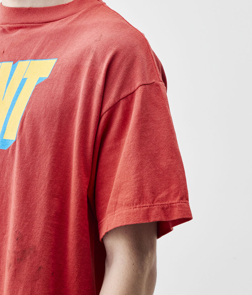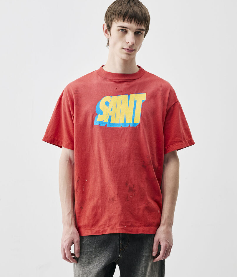 鮮やかなレッドに、ポップなグラフィックの『SAINT』ロゴを配したインパクト抜群のTシャツ。