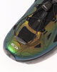 特徴的なのは、アッパーに用いられた半透明のシンセティック素材とメッシュのレイヤー構造の、高級感ある仕上がり。