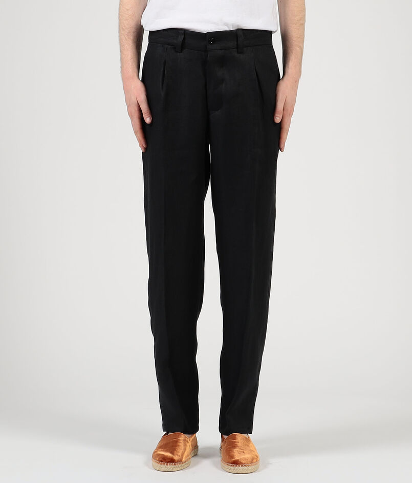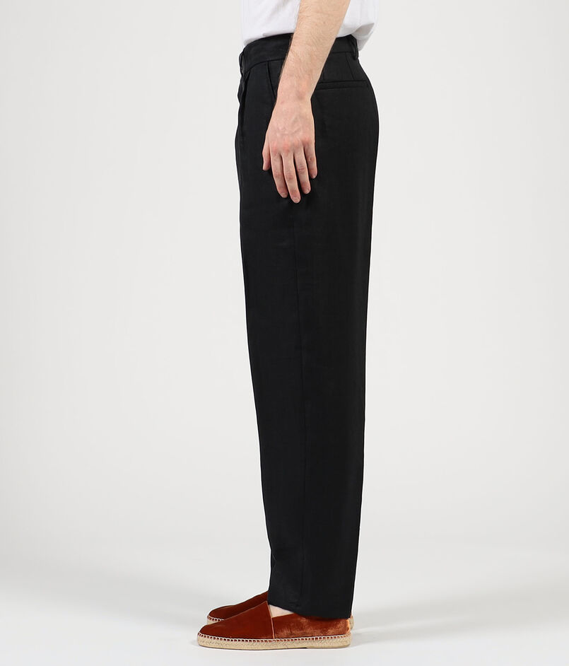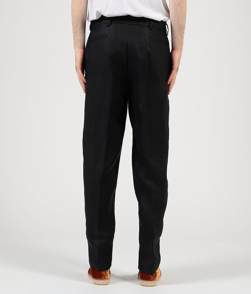イタリアの伝統を継承する〈Salvatore Piccolo〉と〈TOMORROWLAND〉による新たなカプセルコレクションの1プリーツテーパードパンツ。