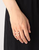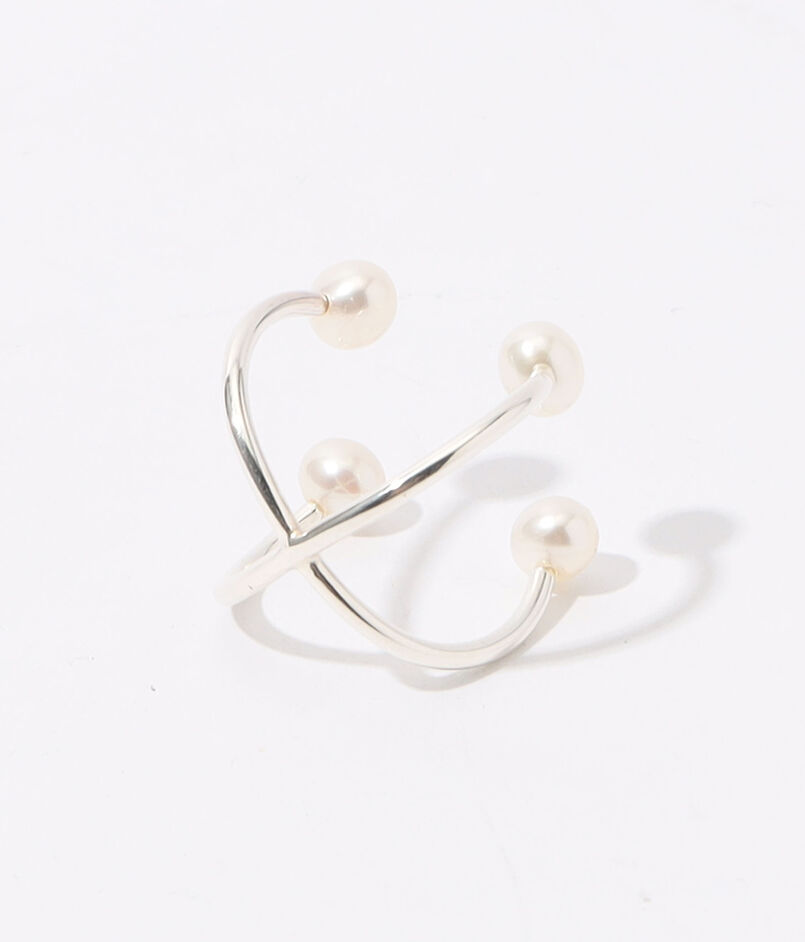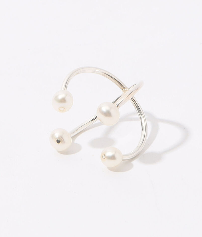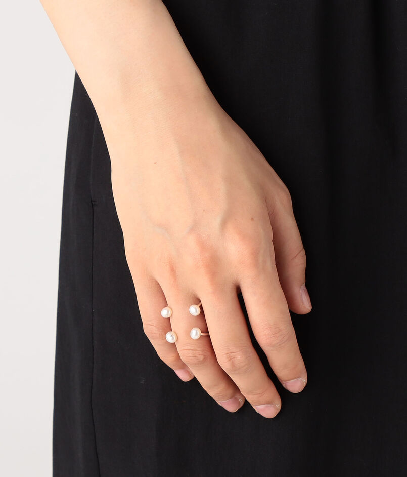 4つのパールが浮いたようなデザインが目を惹くリング。